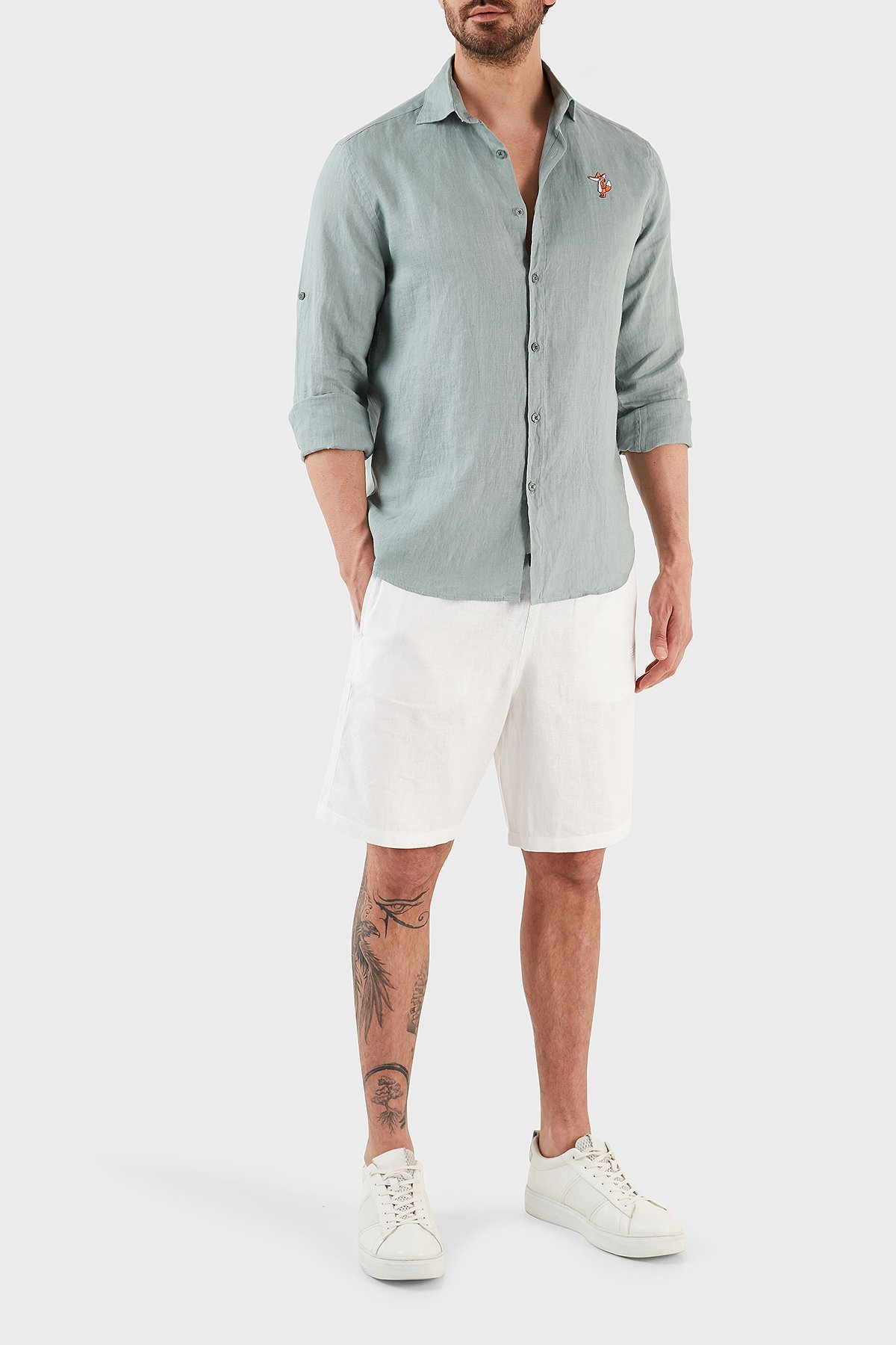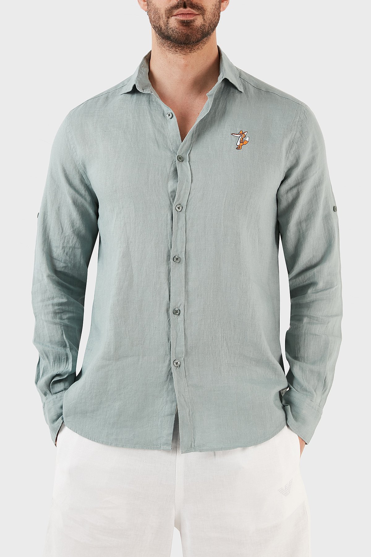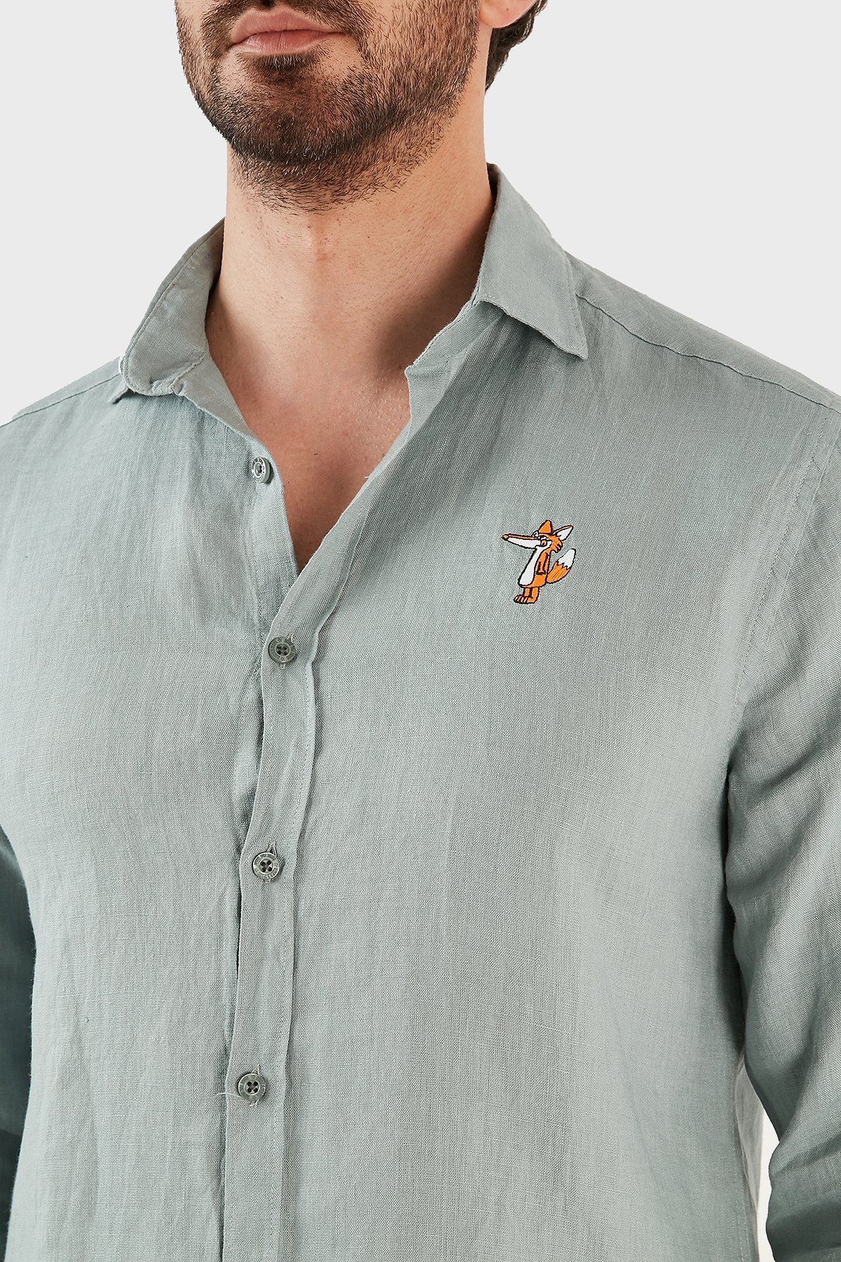 Regular Fit Nakış Detaylı Uzun Kollu % 100 Keten Erkek Gömlek RMM027000007 23950 MİNT