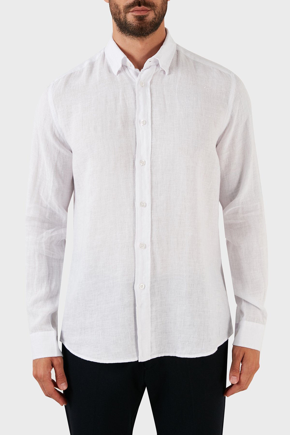 Uzun Kollu % 100 Keten Erkek Gömlek RMM02D000002 BEYAZ