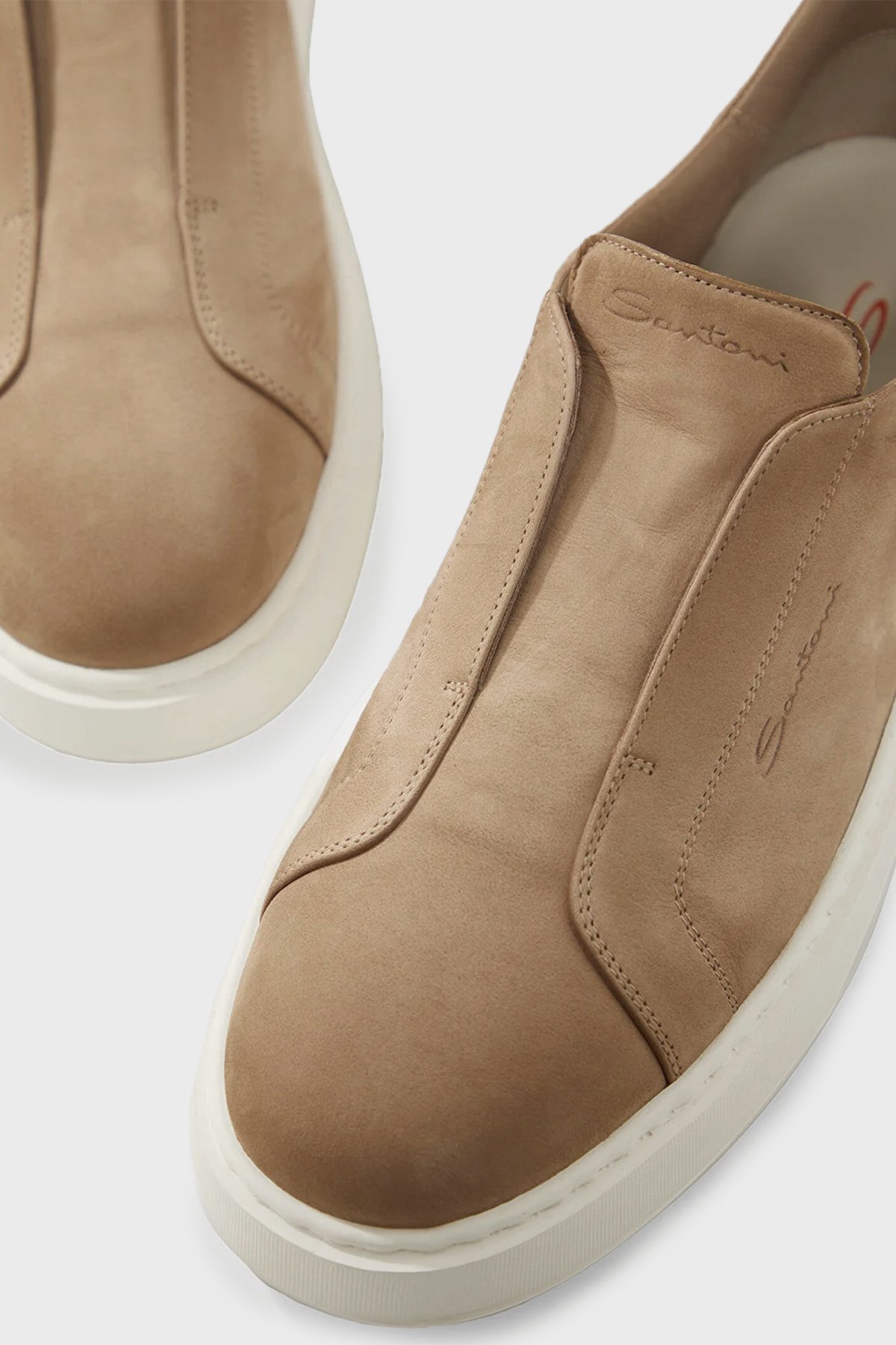 Logolu Süet Kalın Tabanlı Slip-On Sneaker Erkek Ayakkabı MBCD21995BARTFEHE10 BEJ