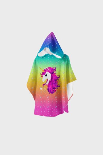 Pammy Pamuklu Kapüşonlu UPF 50+ Korumalı Havlu Kız Çocuk Panço SP2312000001 FUŞYA-YEŞİL