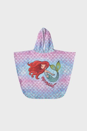 Scarlet Deniz Kızı Desenli Pamuklu Kapüşonlu Havlu Kız Çocuk Panço SH19110034 MAVİ