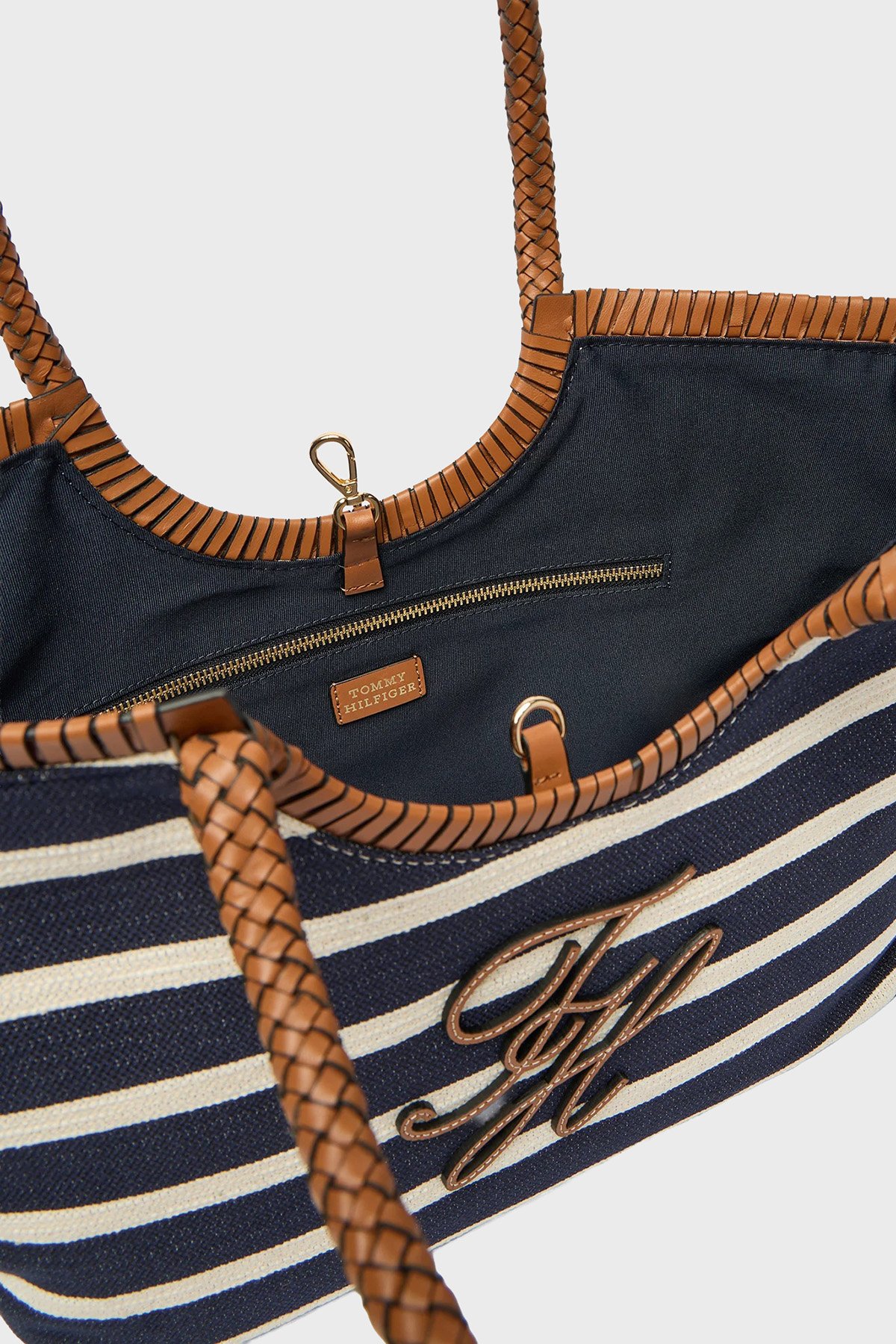 Tommy Hilfige rÇizgili Dokulu Logolu Omuz Askılı Tote Kadın Çanta AW0AW18400 0GY LACİVERT-BEYAZ