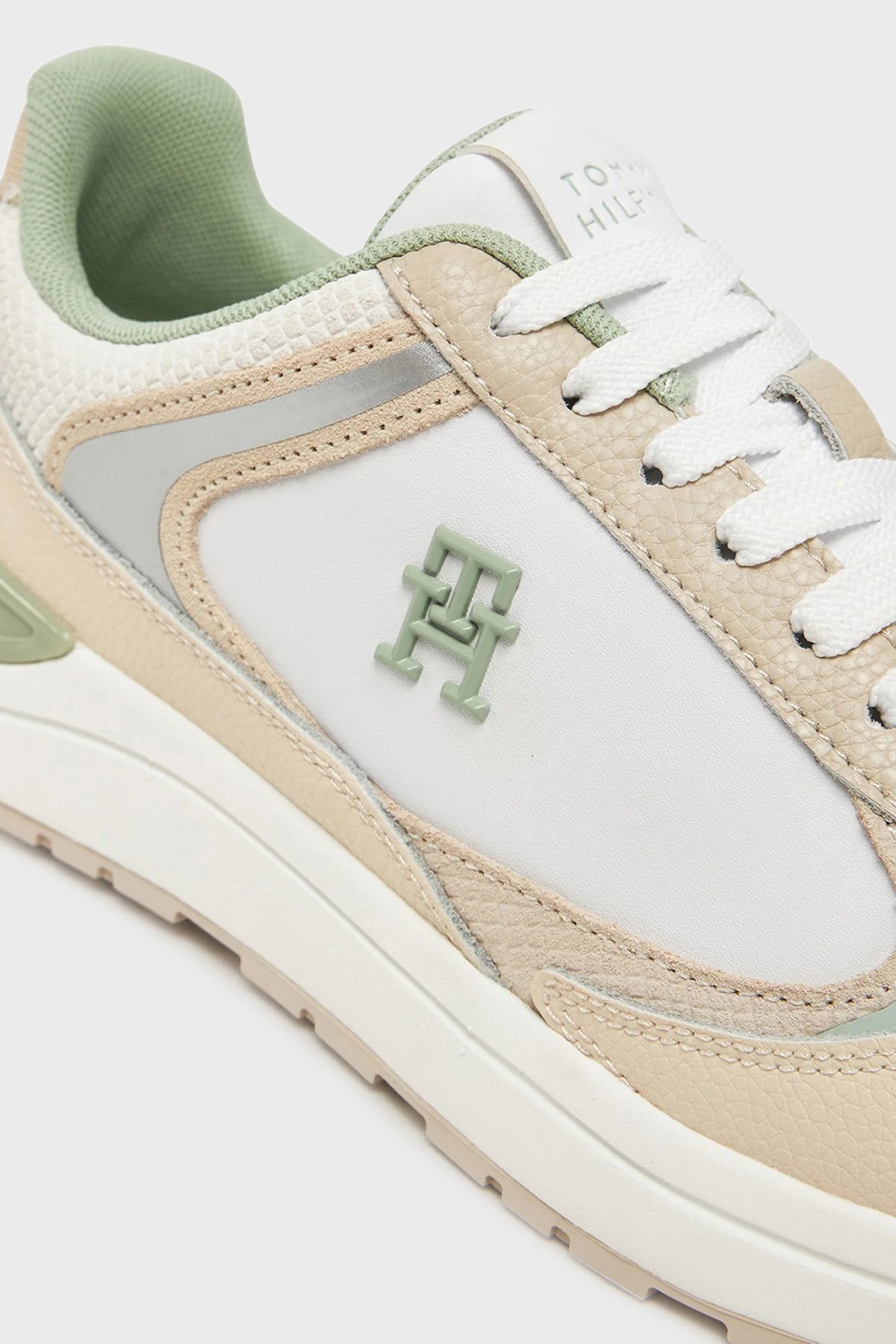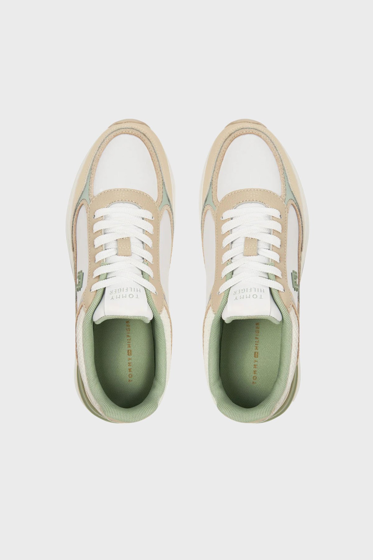 % 100 Deri Logolu Sneaker Bayan Ayakkabı FW0FW08472 0LB BEYAZ-BEJ