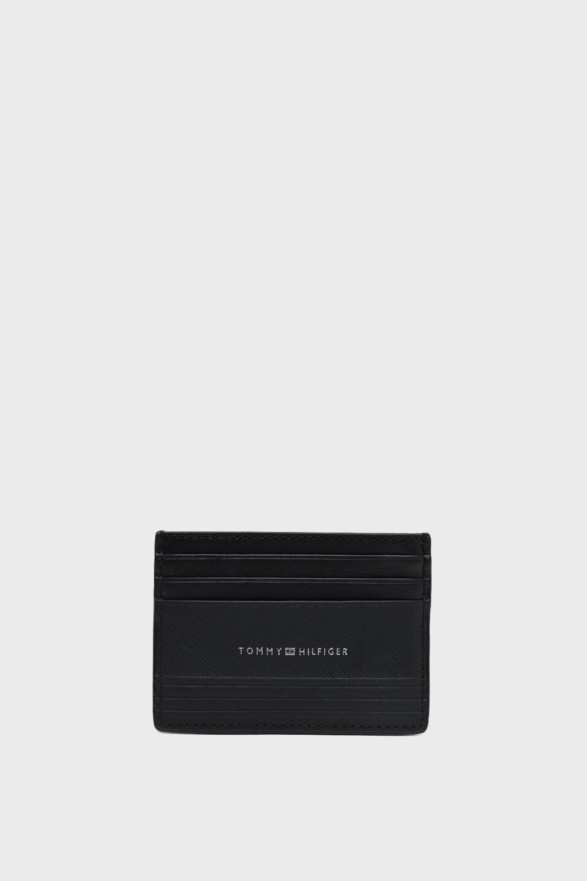 Tommy Jeans % 100 Deri Monogram Logo Baskılı Erkek Kartlık AM0AM13257 BDS SİYAH