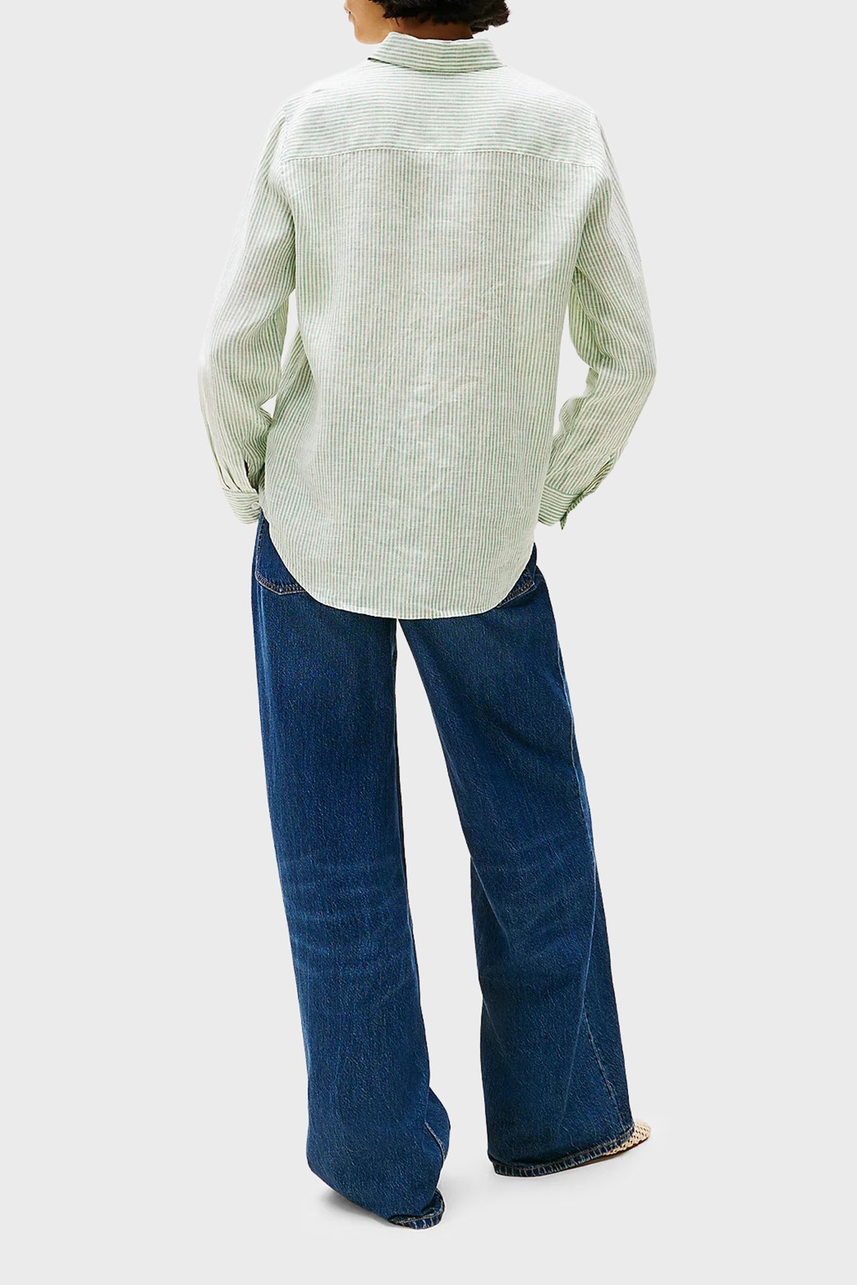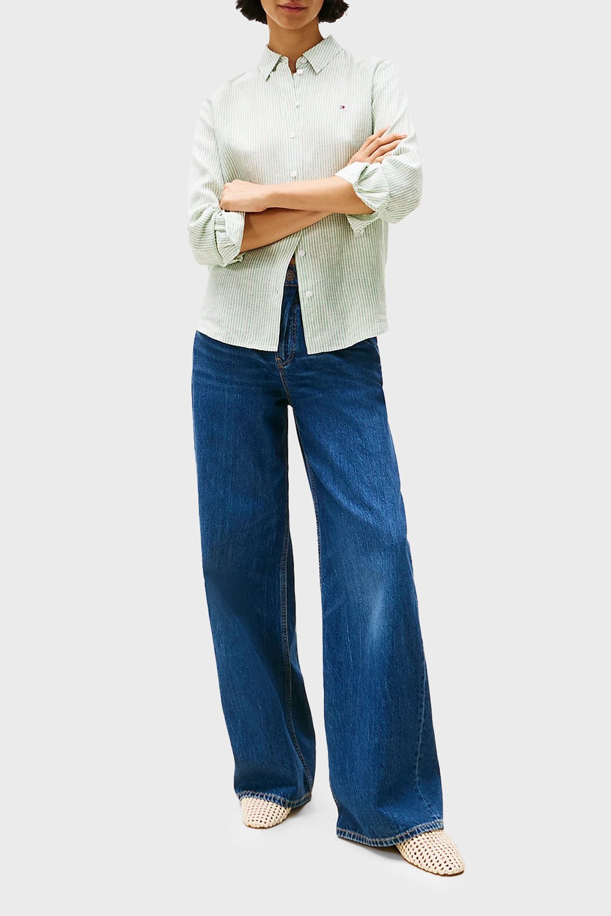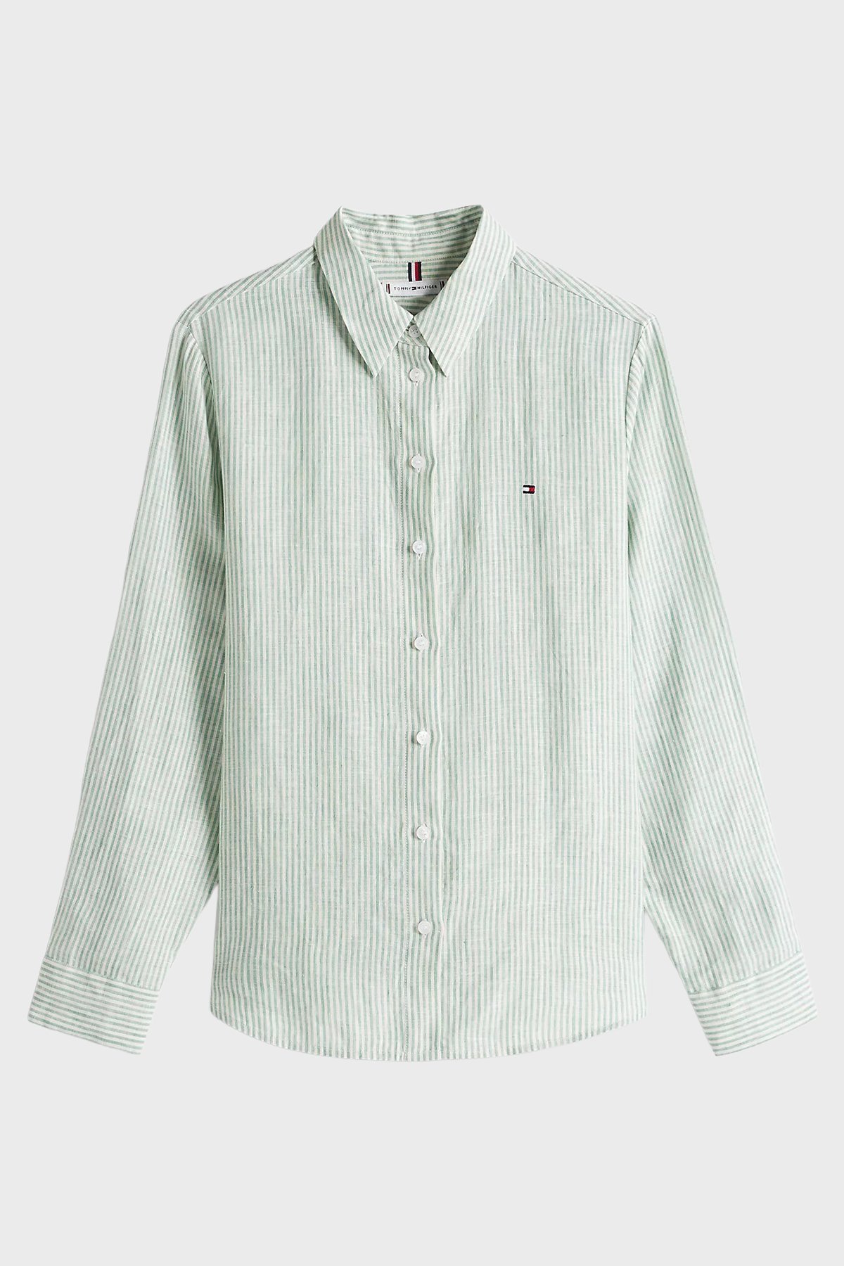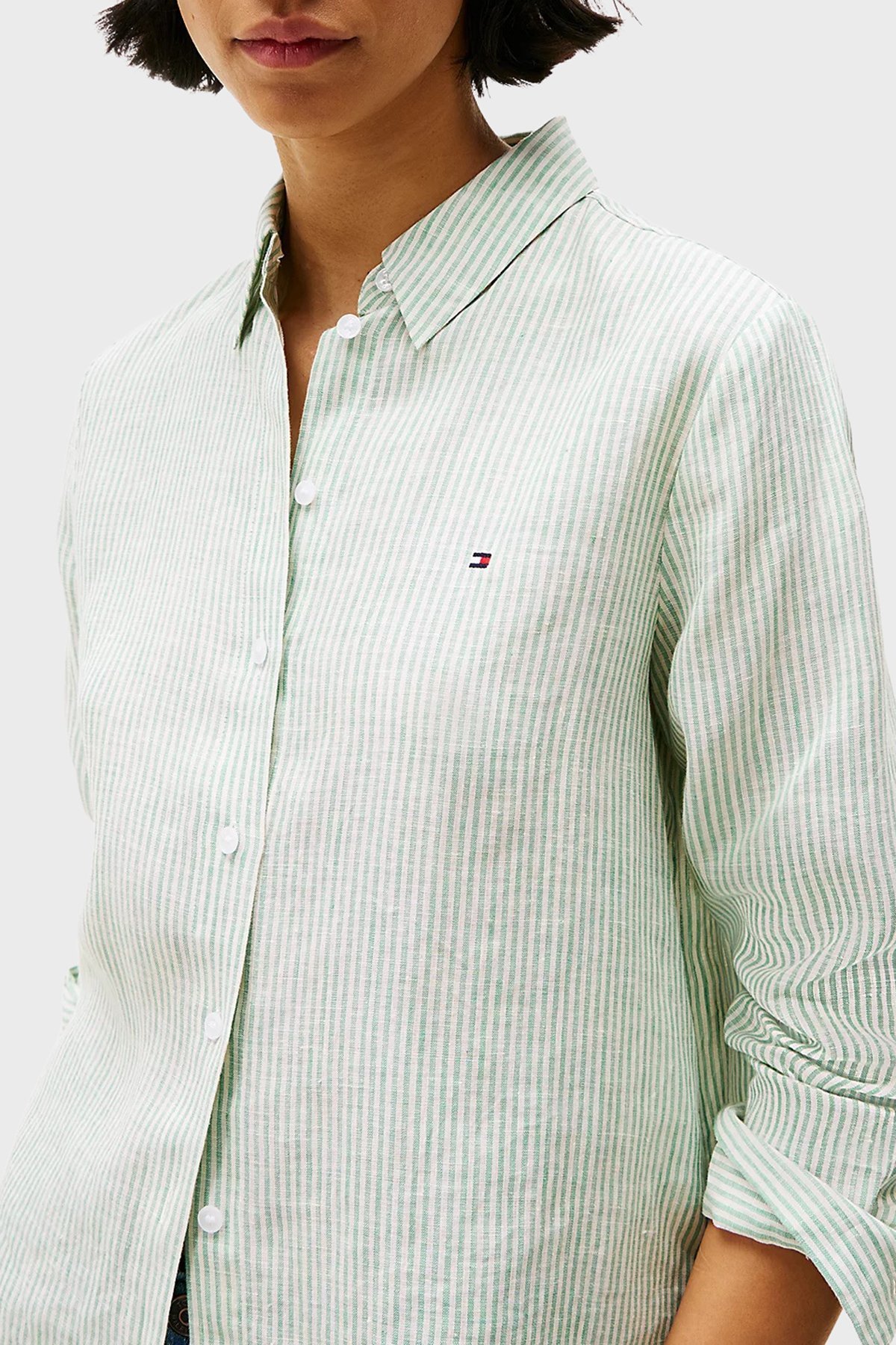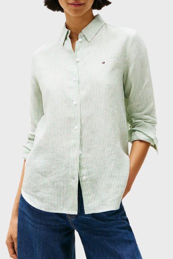 % 100 Keten Regular Fit Düz Yaka Bayan Gömlek WW0WW44679 0CF AÇIK YEŞİL
