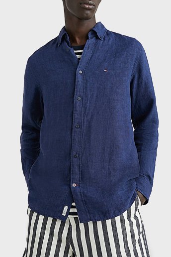 % 100 Keten Regular Fit Erkek Gömlek MW0MW30897 DCC LACİVERT