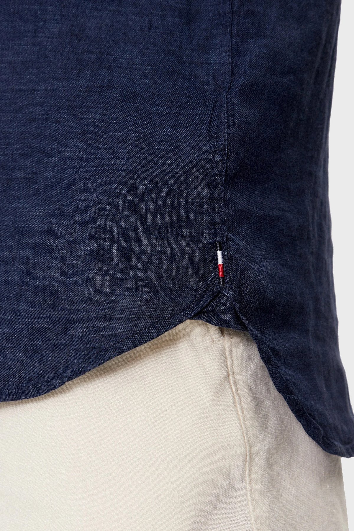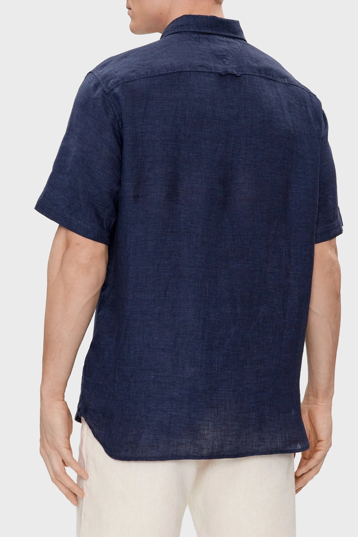 % 100 Keten Regular Fit Kısa Kollu Erkek Gömlek MW0MW35207 DCC LACİVERT