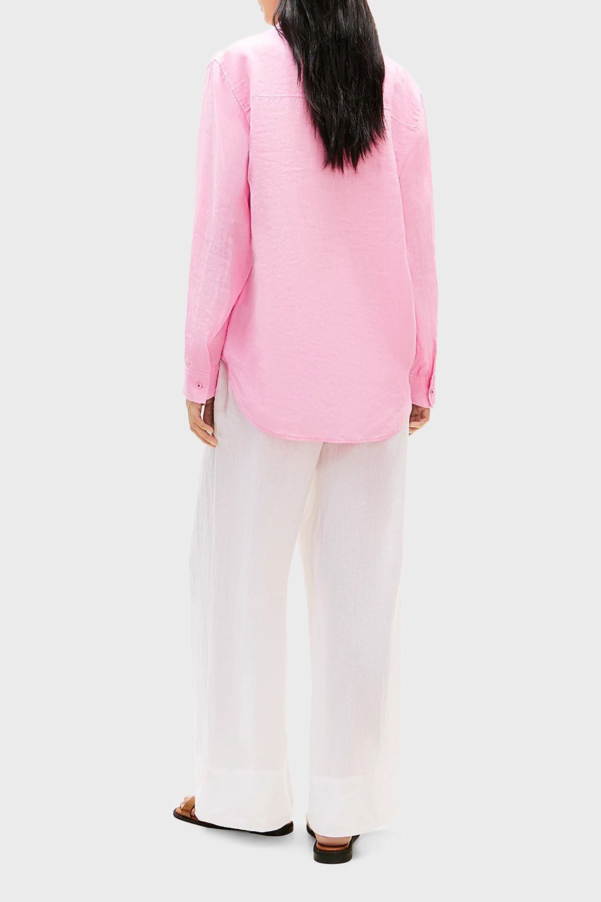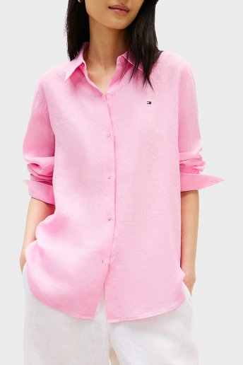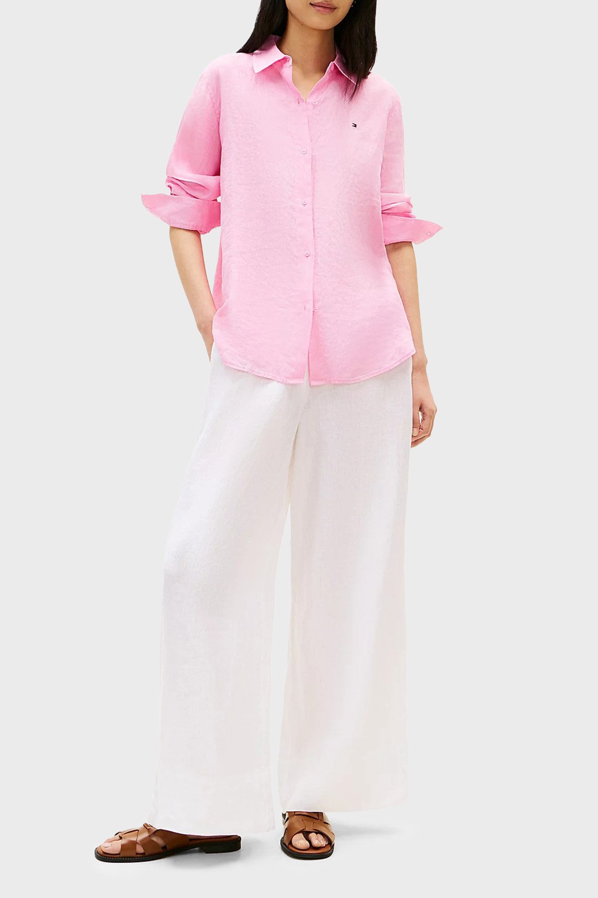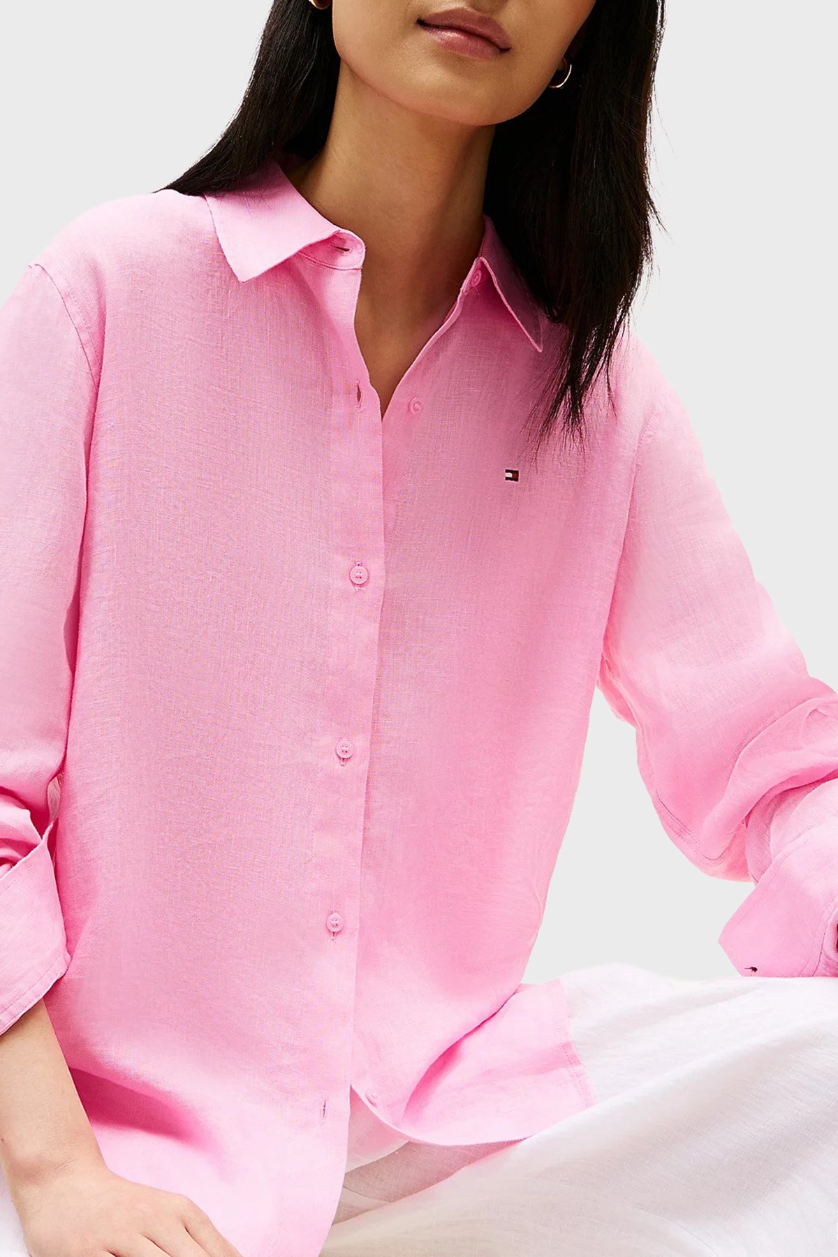% 100 Keten Regular Fit Klasik Yaka Kadın Gömlek WW0WW44679 TOR PEMBE