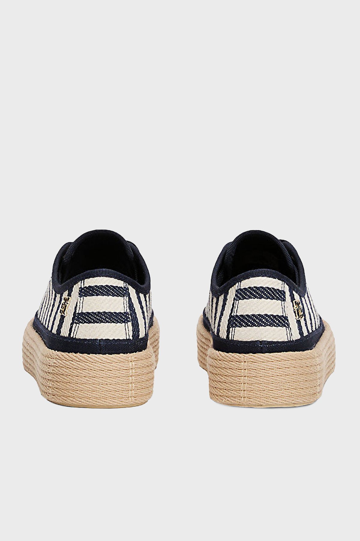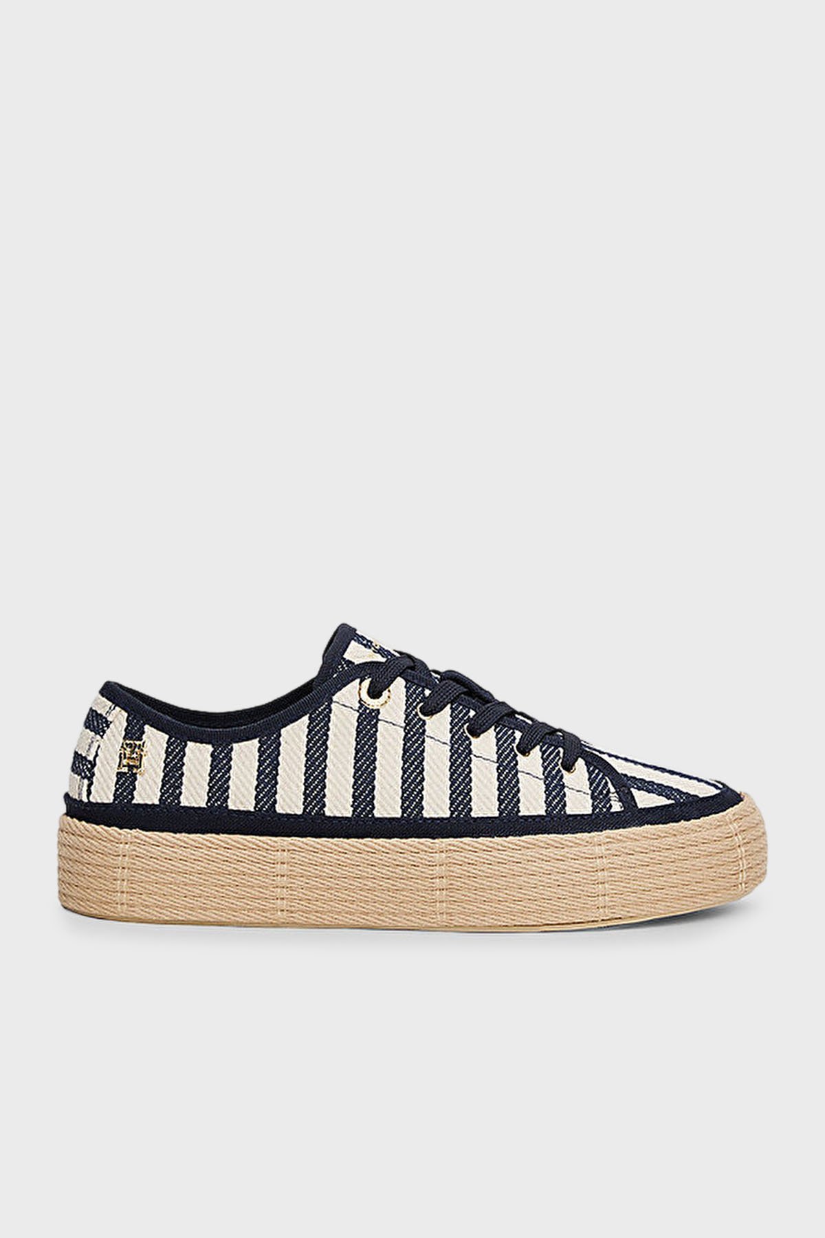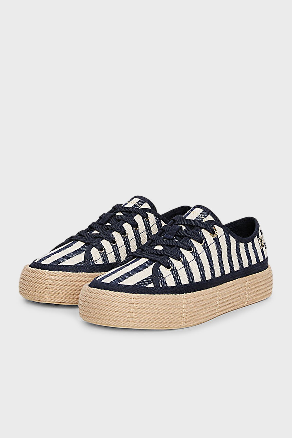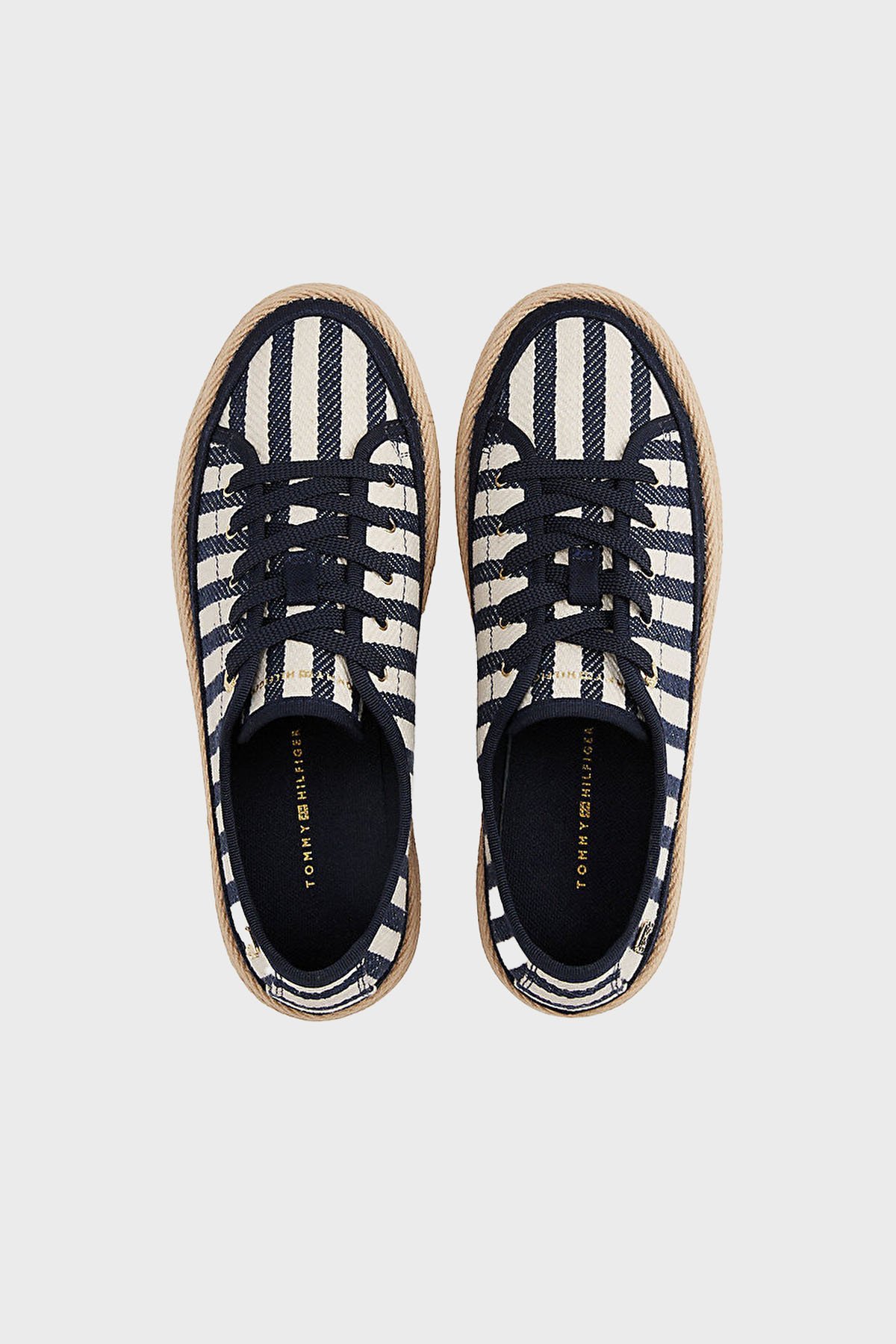 % 100 Pamuk Çizgili Sneaker Bayan Ayakkabı FW0FW08646 0GZ BEYAZ-MAVİ