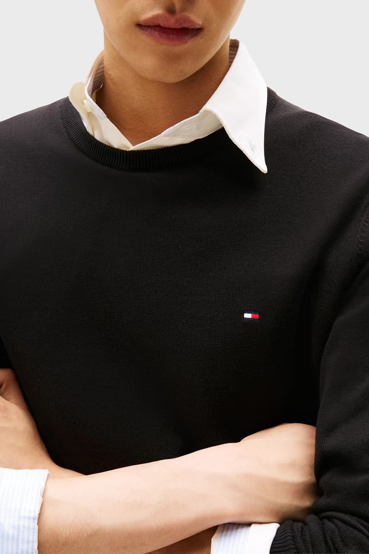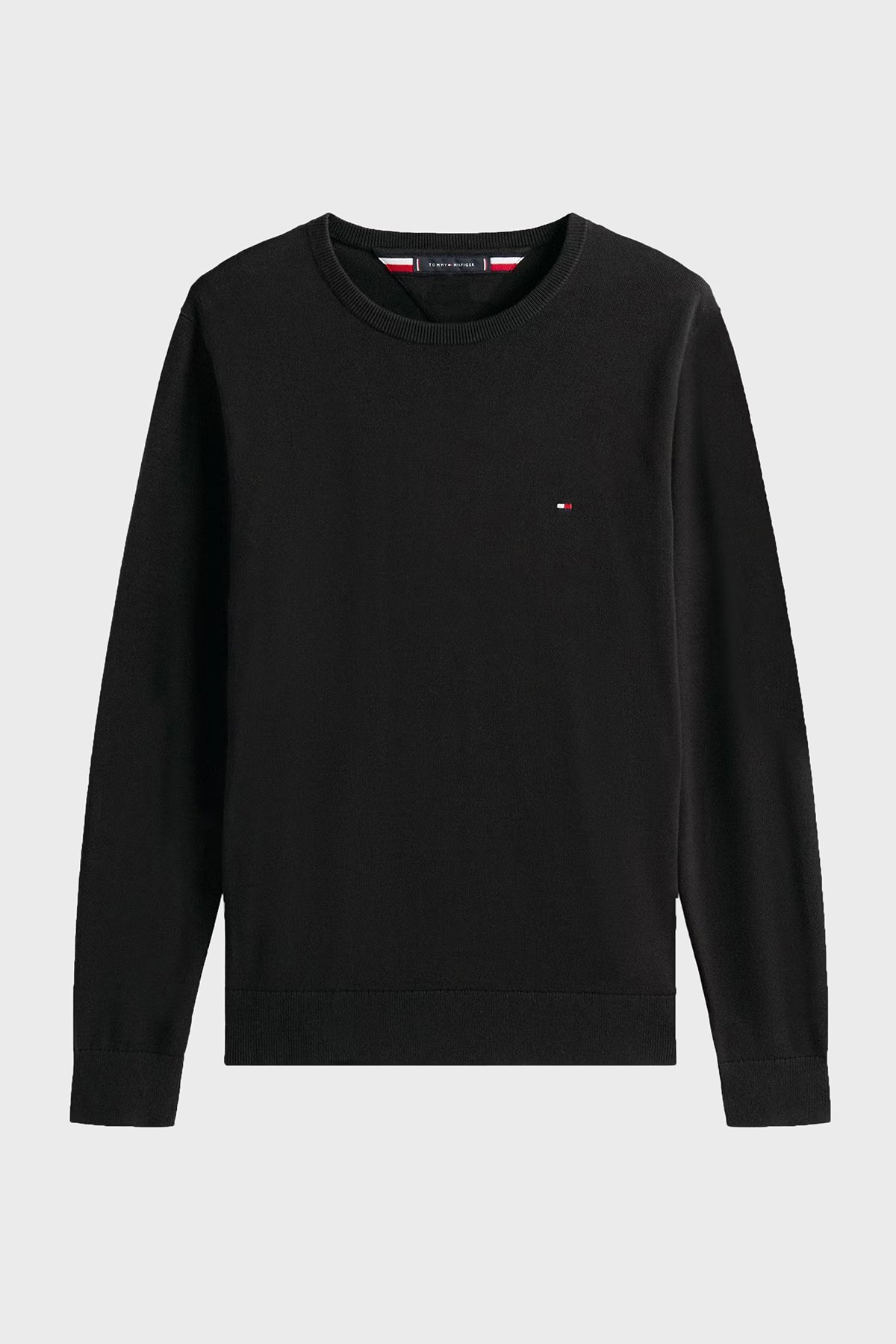 % 100 Pamuk Regular Fit Bisiklet Yaka Logolu Erkek Kazak MW0MW14748 BDS SİYAH