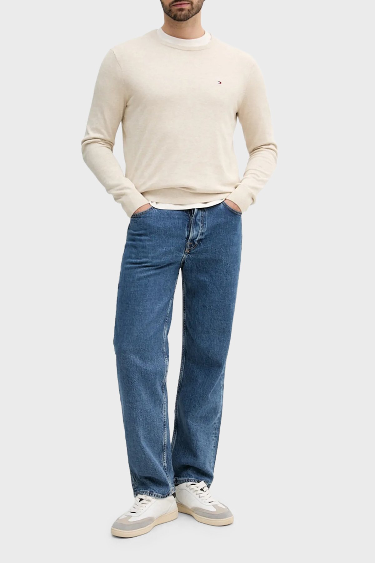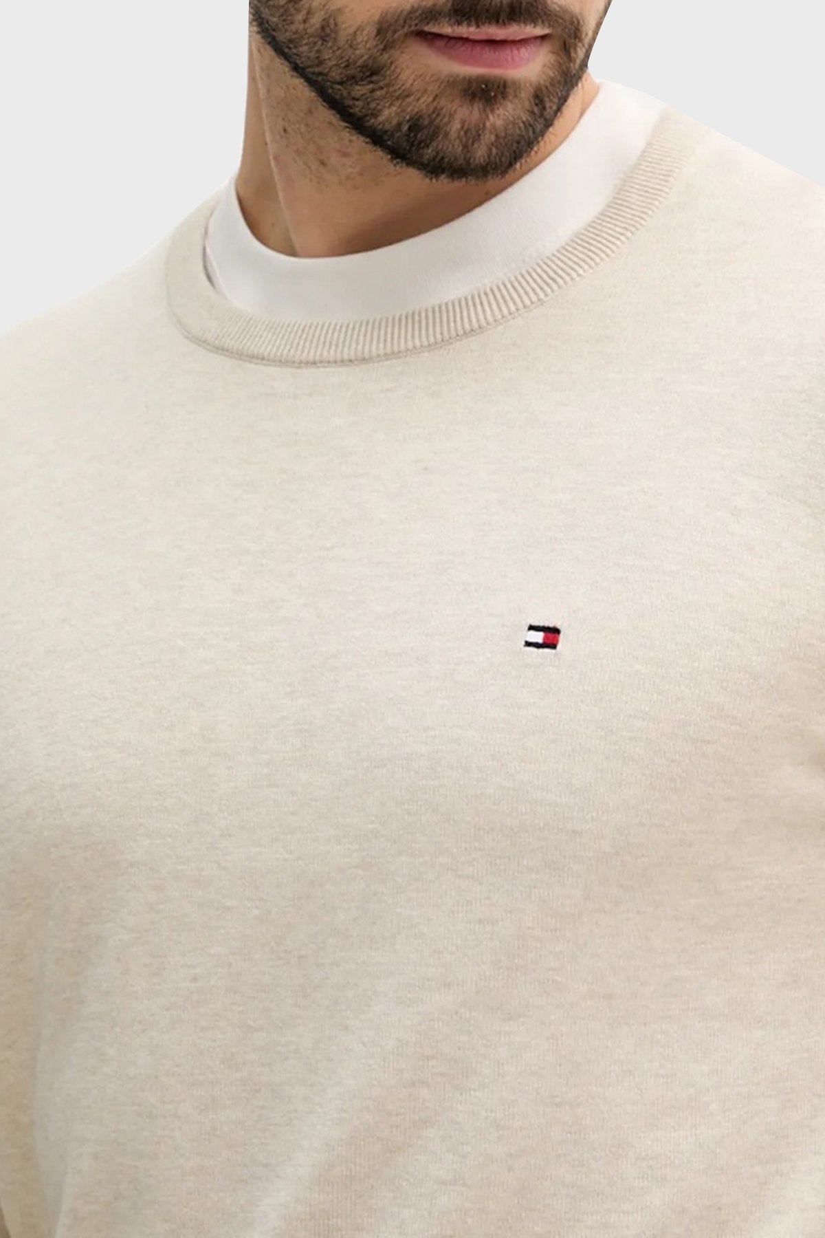 % 100 Pamuk Regular Fit Bisiklet Yaka Logolu Erkek Kazak MW0MW39999 HGF BEJ
