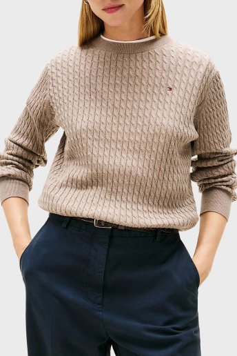 % 100 Pamuk Regular Fit Bisiklet Yaka Örgü Bayan Kazak WW0WW44993 ADL BEJ