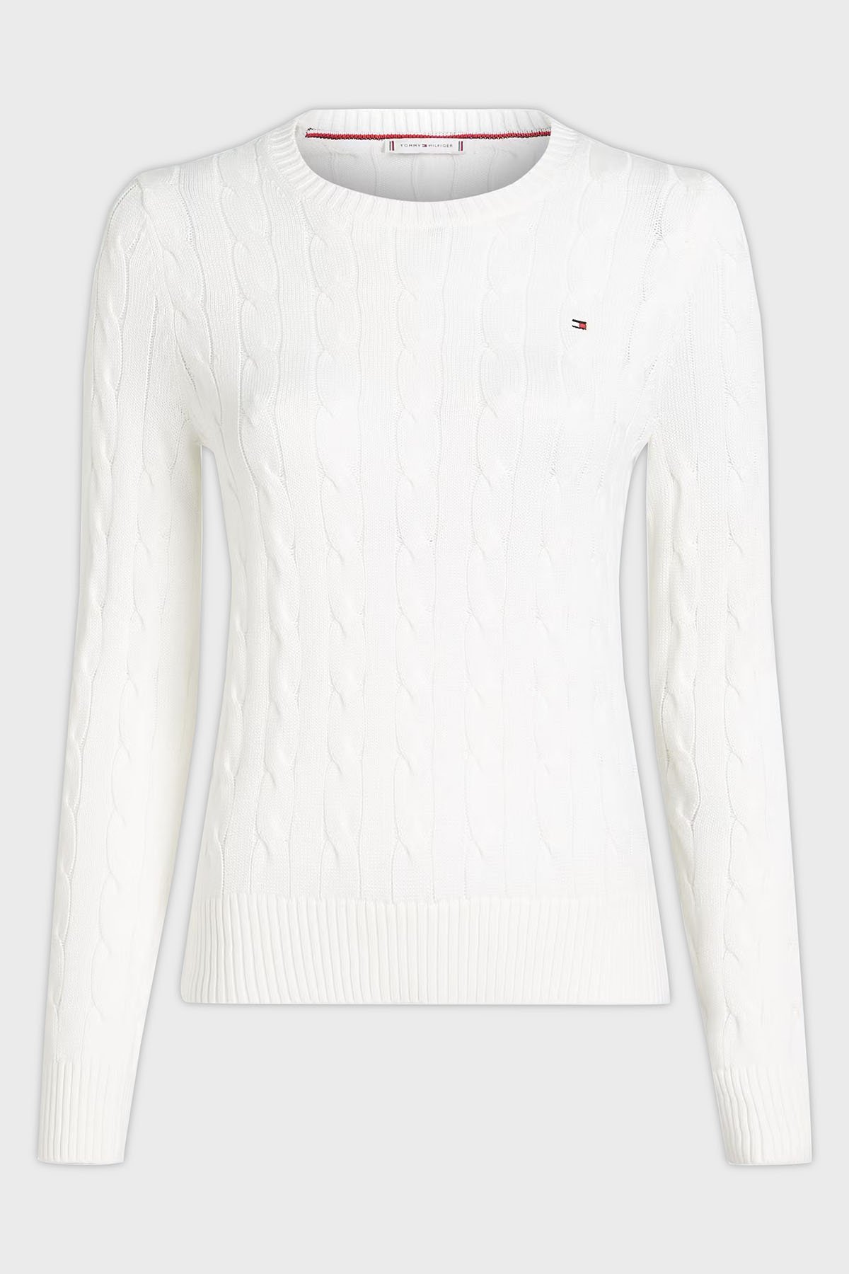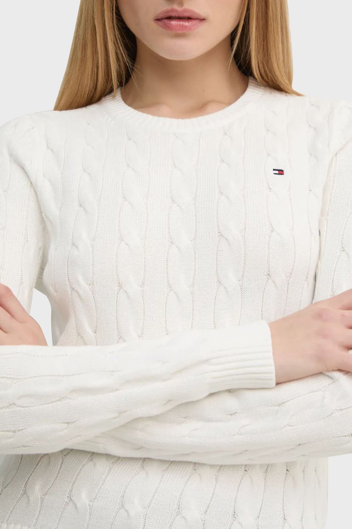 % 100 Pamuk Regular Fit Bisiklet Yaka Örme Bayan Kazak WW0WW45207 YBL BEYAZ