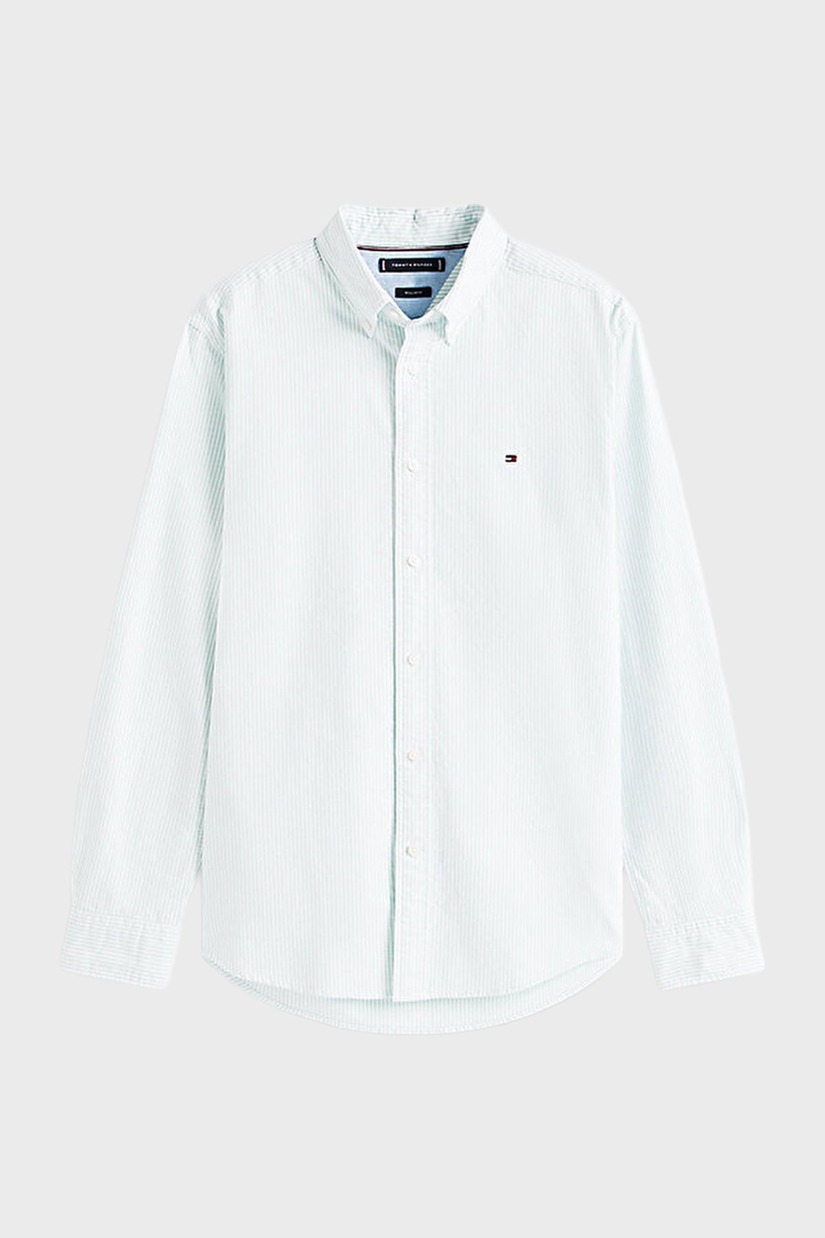 % 100 Pamuk Regular Fit Çizgili Erkek Gömlek MW0MW36238 0CF AÇIK YEŞİL