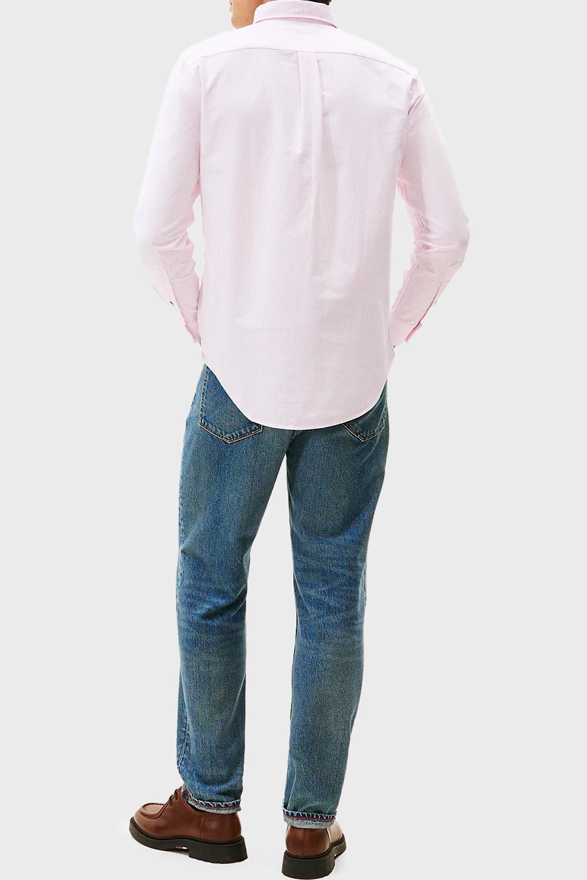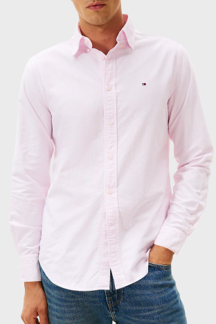 % 100 Pamuk Regular Fit Çizgili Erkek Gömlek MW0MW36238 0D2 PEMBE