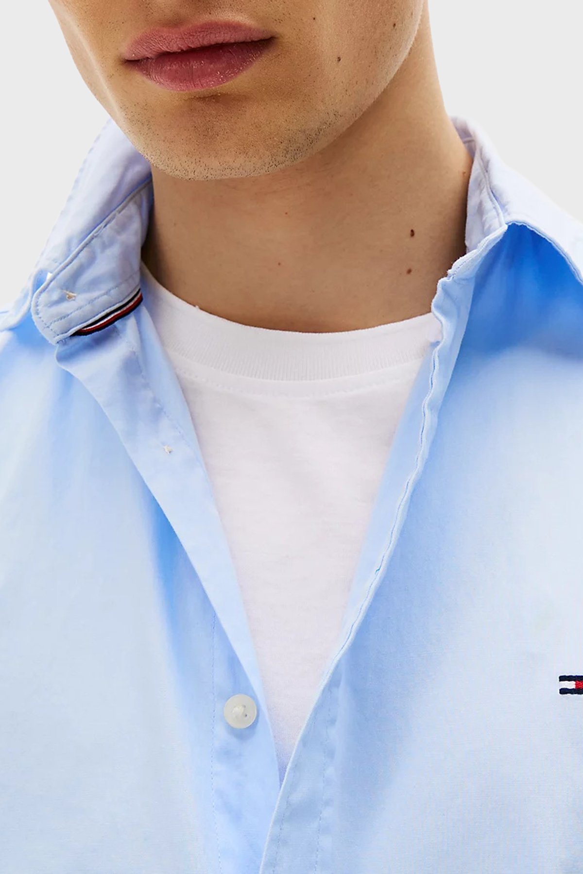 % 100 Pamuk Regular Fit Düğmeli Yaka Erkek Gömlek MW0MW39988 C3Q AÇIK MAVİ