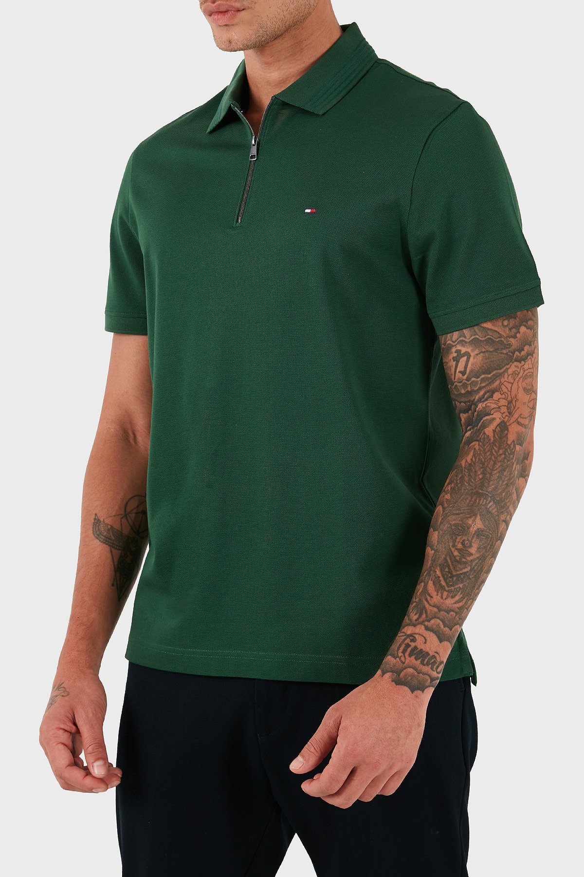 % 100 Pamuk Regular Fit Fermuarlı Erkek Polo Yaka T Shirt MW0MW38473 L2N YEŞİL