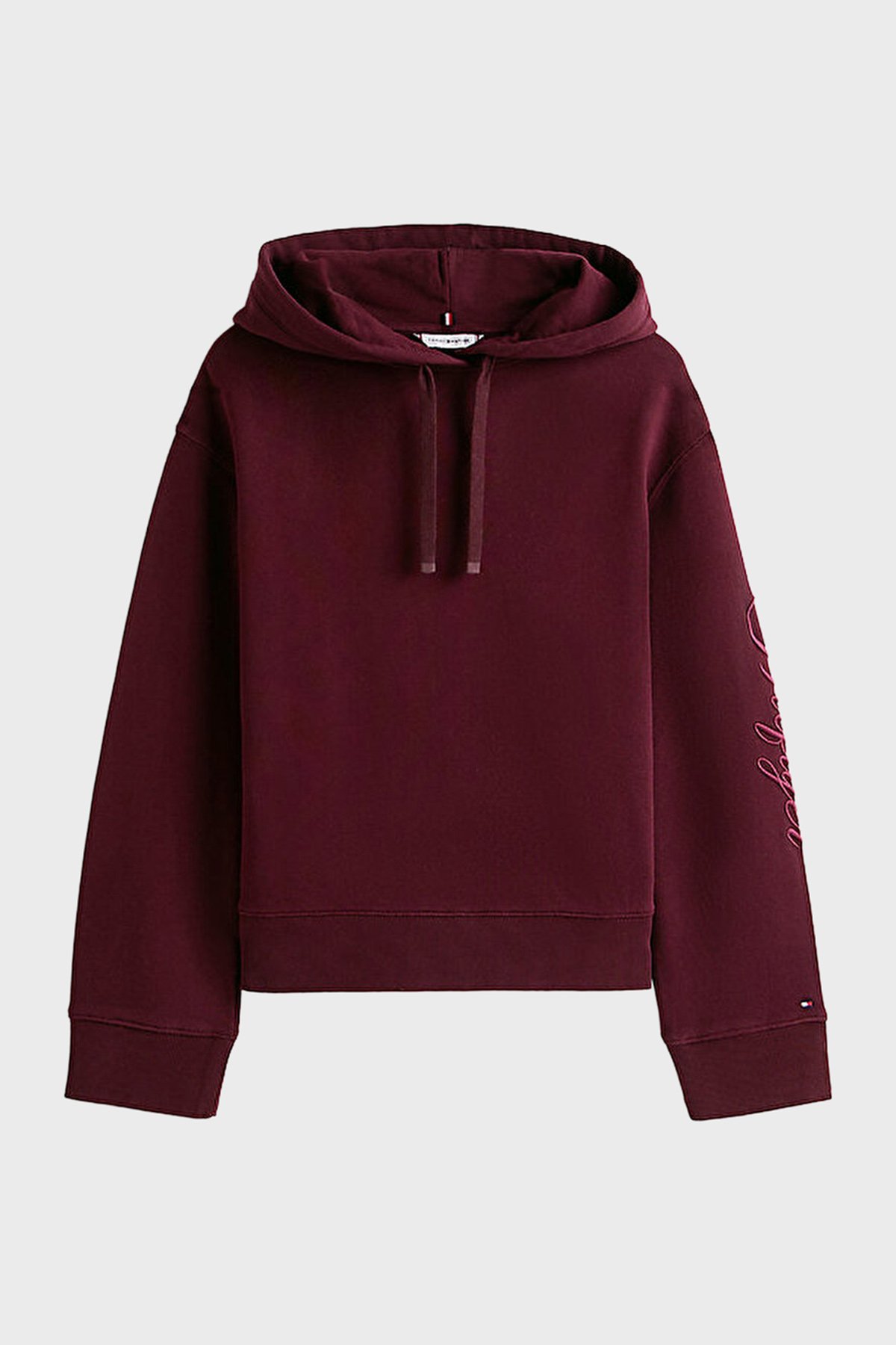 % 100 Pamuk Regular Fit Kapüşonlu Yaka Logolu Bayan Sweat WW0WW46127 XIH BORDO