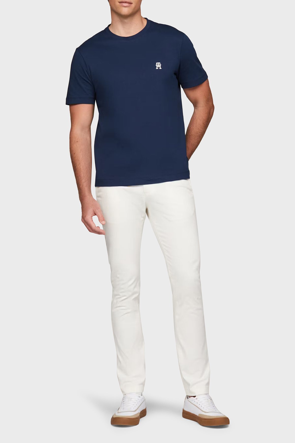 % 100 Pamuk Regular Fit Monogram Logolu Erkek T Shirt MW0MW37510 DAF LACİVERT