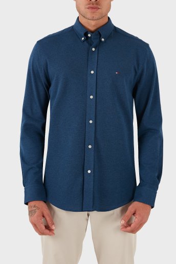 % 100 Pamuk Regular Fit Uzun Kollu Logolu Erkek Gömlek MW0MW39422 DU5 MAVİ