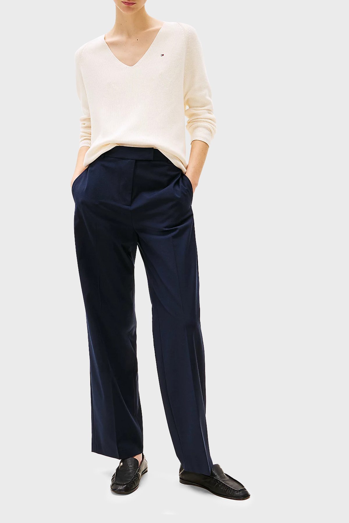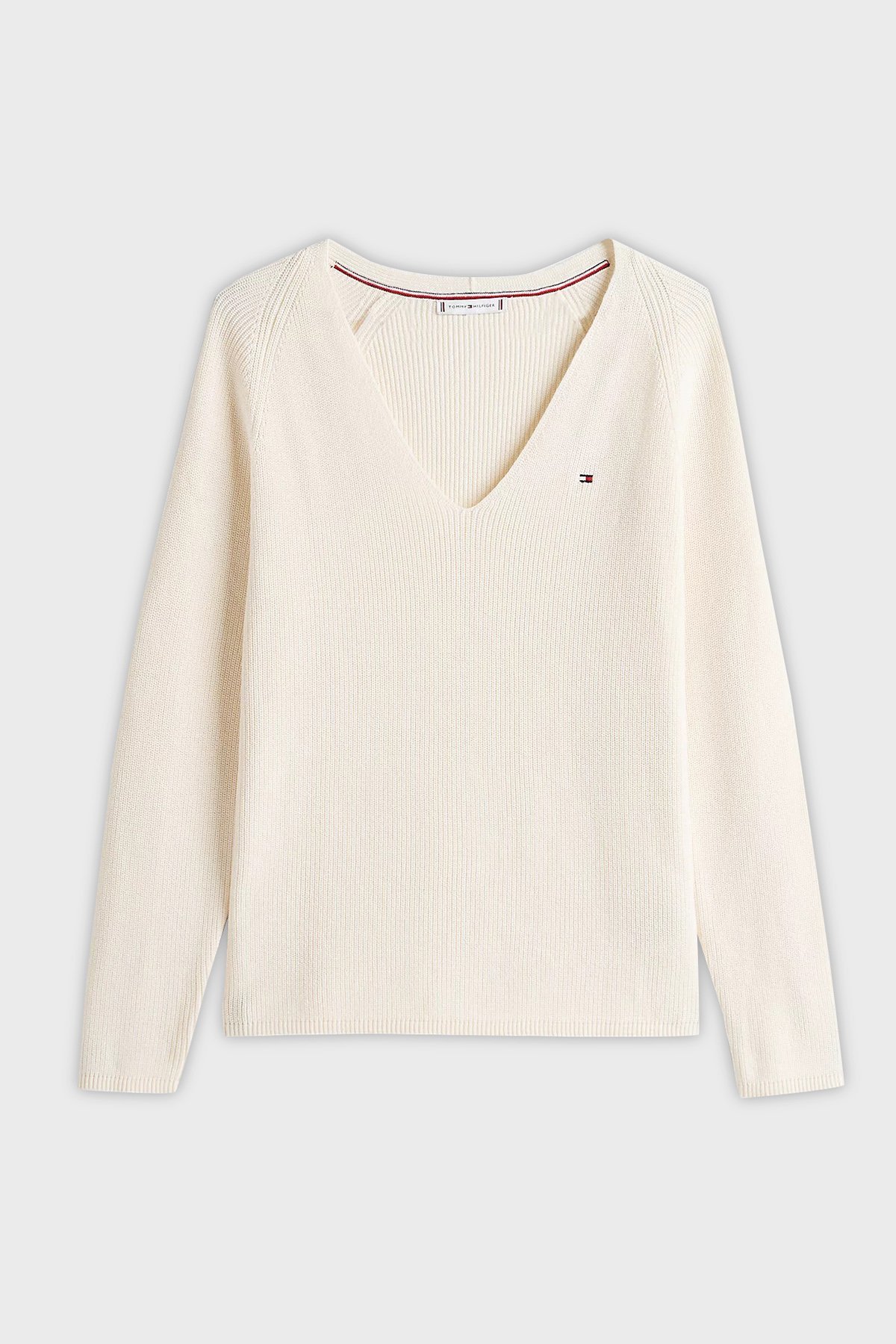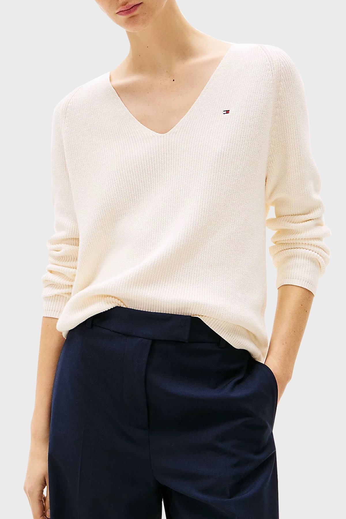 % 100 Pamuk Regular Fit V Yaka Bayan Kazak WW0WW44452 Z00 AÇIK BEJ