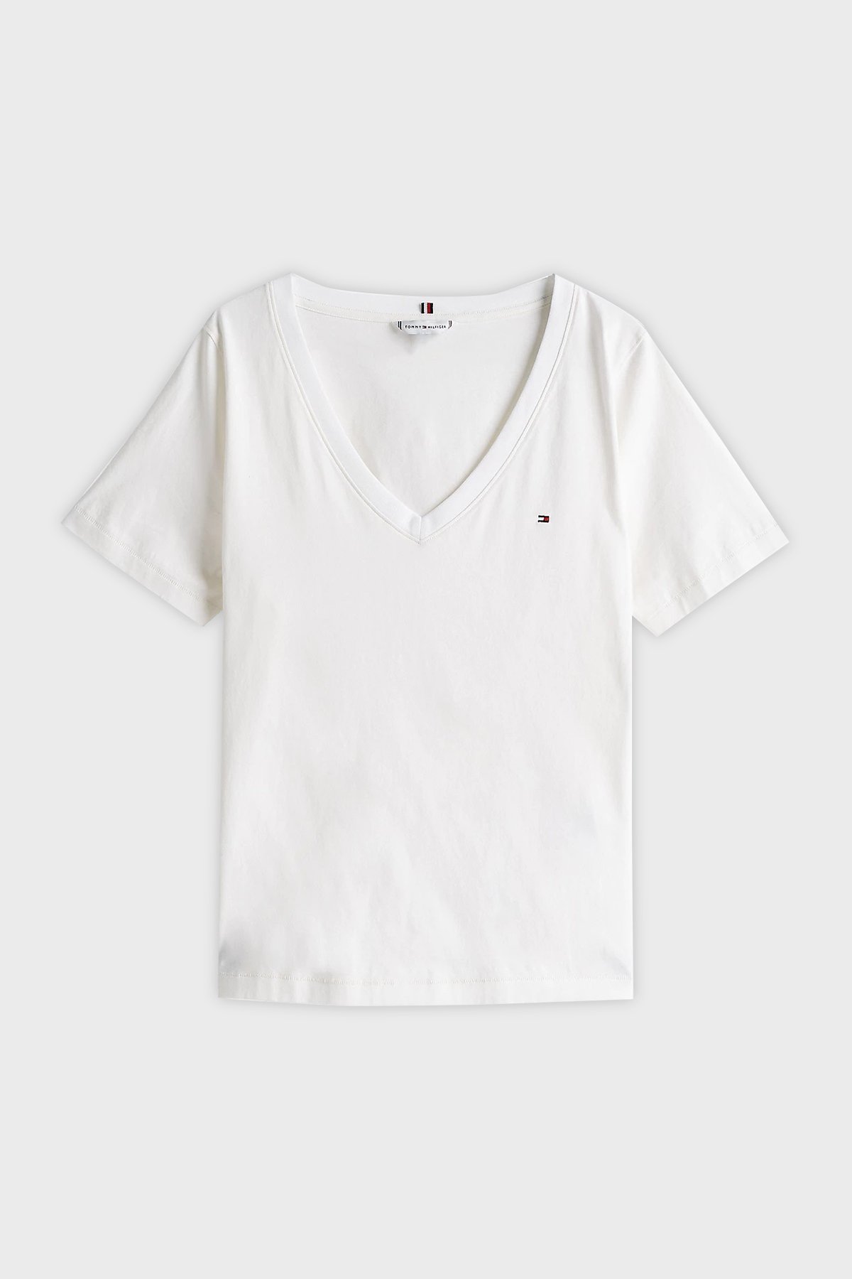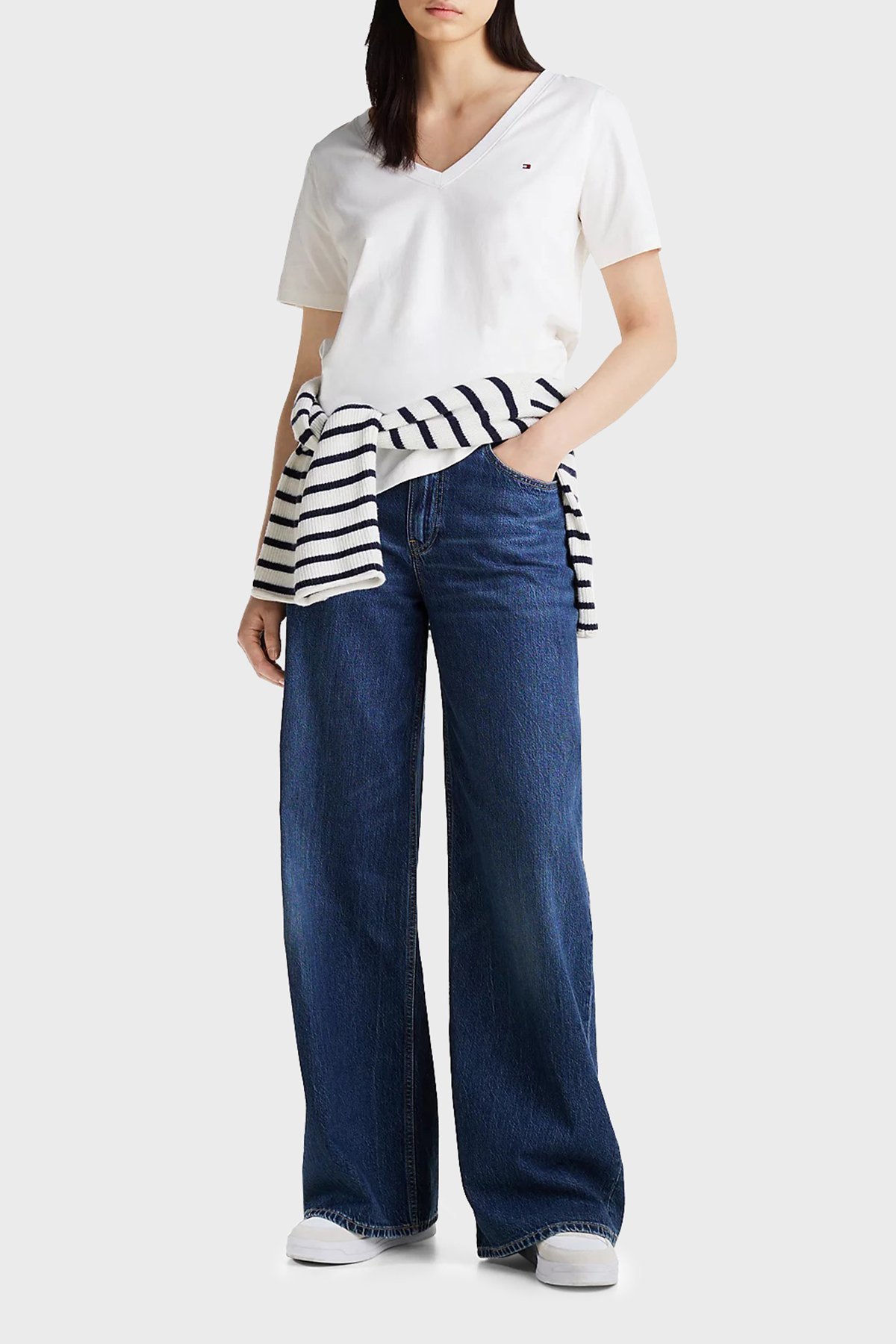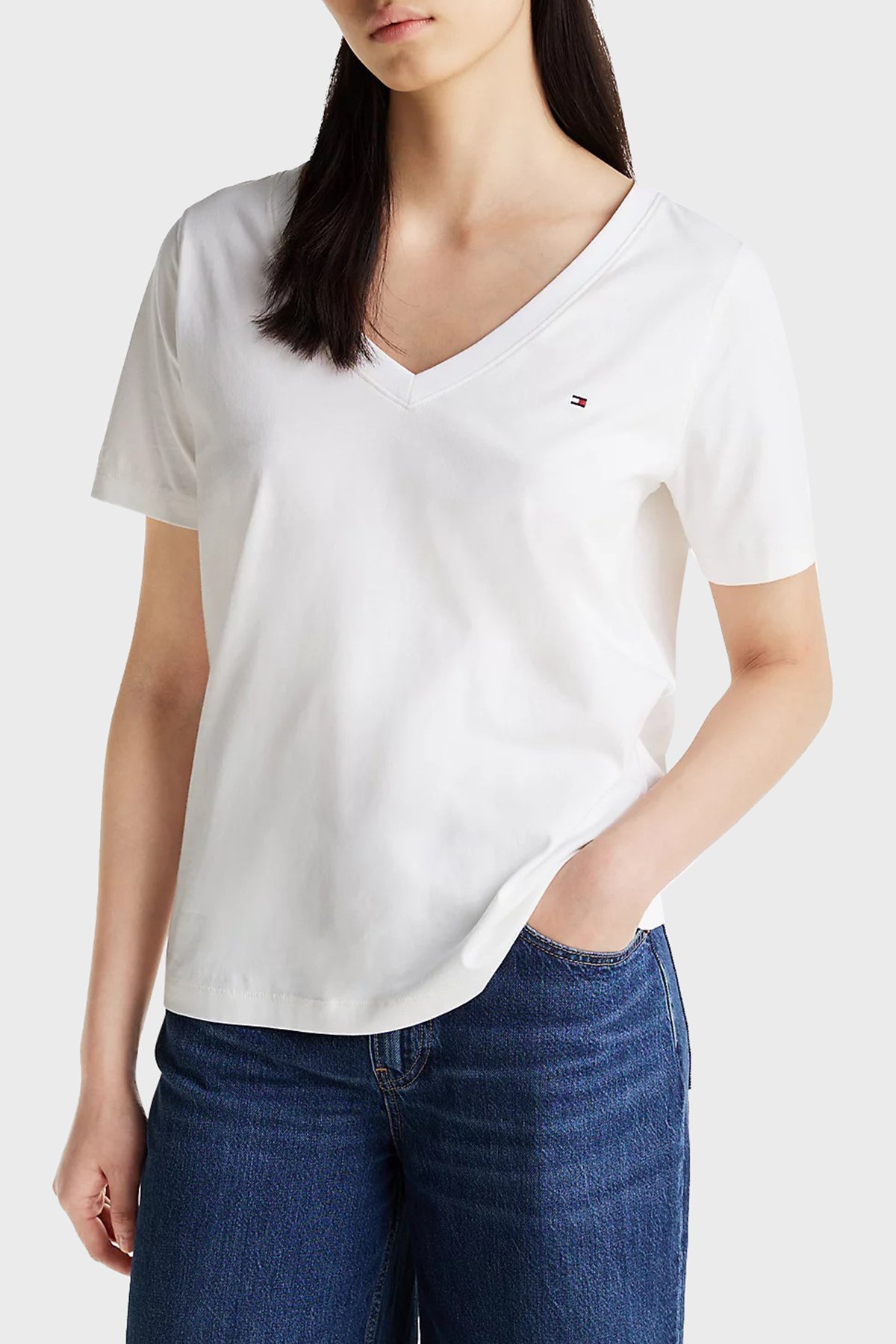 % 100 Pamuk Regular Fit V Yaka Bayan T Shirt WW0WW44177 YCF BEYAZ