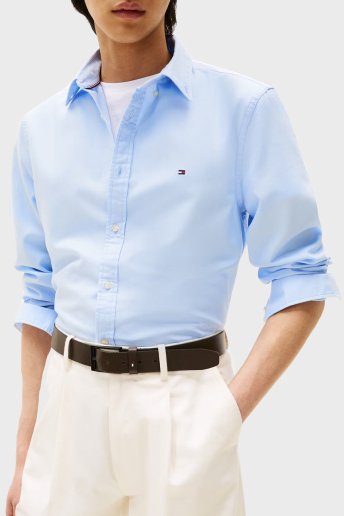 % 100 Pamuk Slim Fit Düğmeli Yaka Erkek Gömlek MW0MW37578 C3Q AÇIK MAVİ