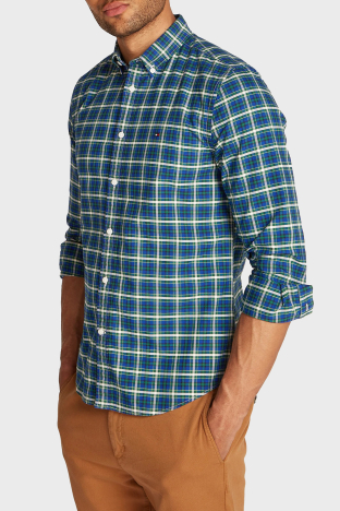 % 100 Pamuk Slim Fit Kareli Erkek Gömlek MW0MW37567 0H7 KOYU YEŞİL