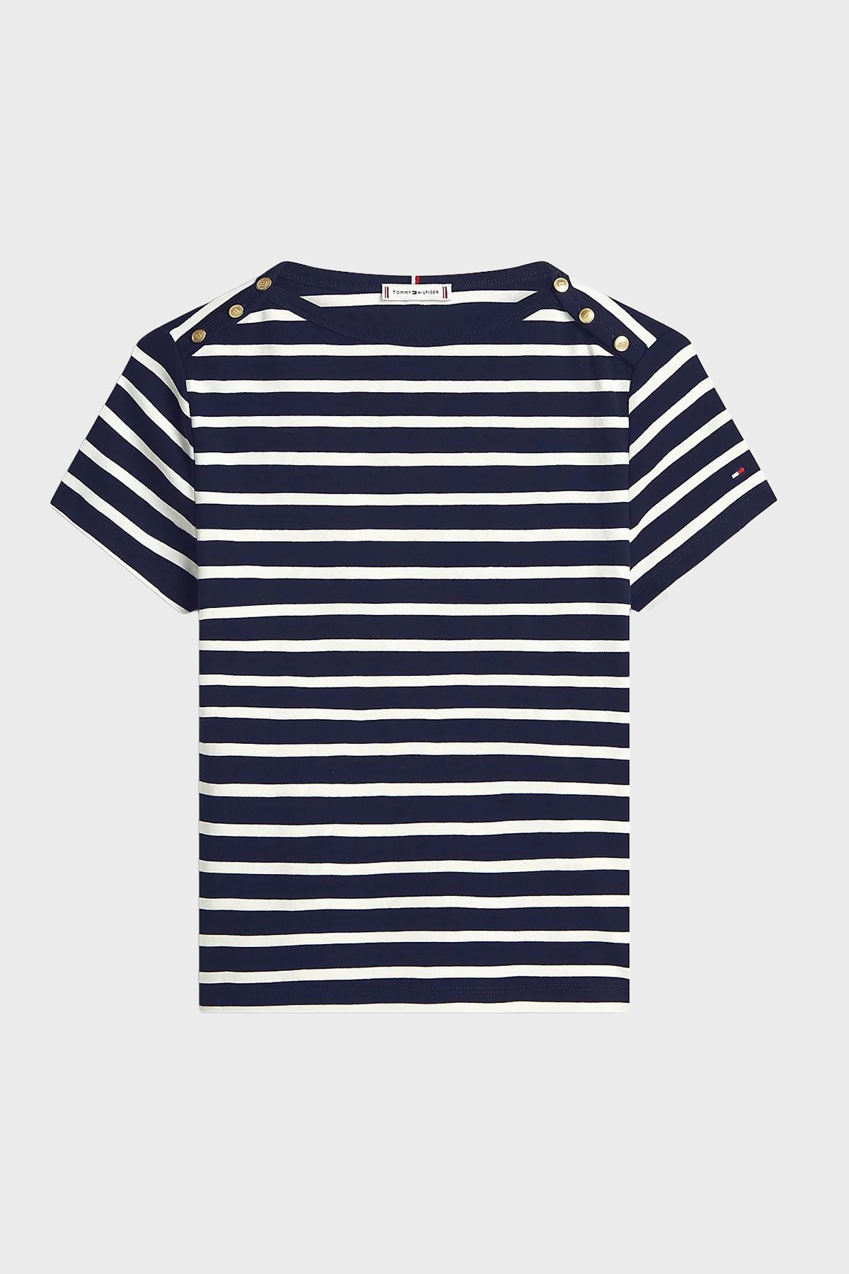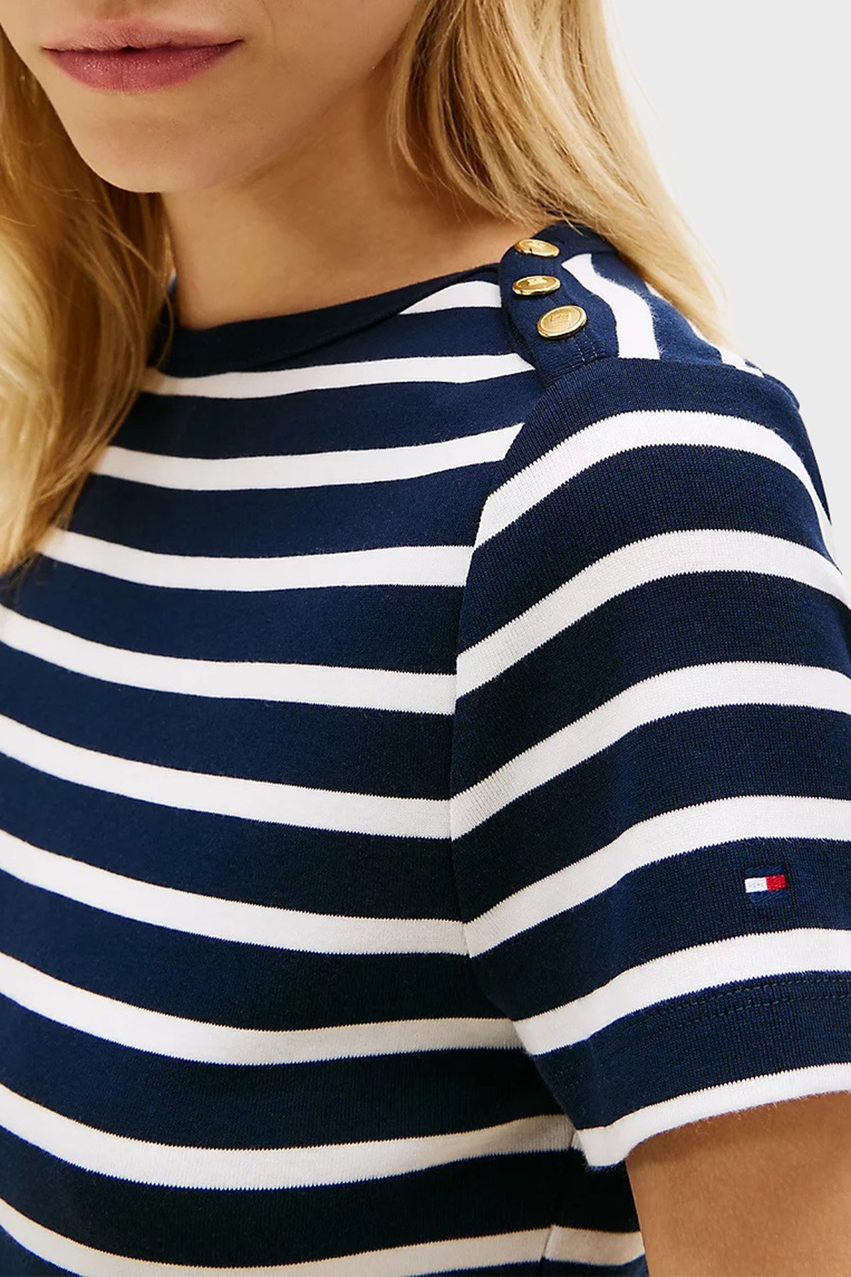 % 100 Pamuk Slim Fit Kayık Yaka Kadın T Shirt WW0WW49250 0X3 LACİVERT-BEYAZ