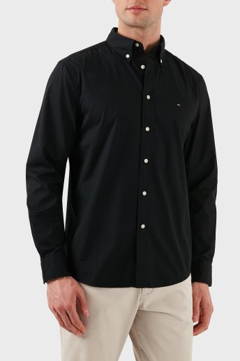 % 100 Pamuk Regular Fit Düğmeli Yaka Logolu Erkek Gömlek MW0MW39988 BDS SİYAH