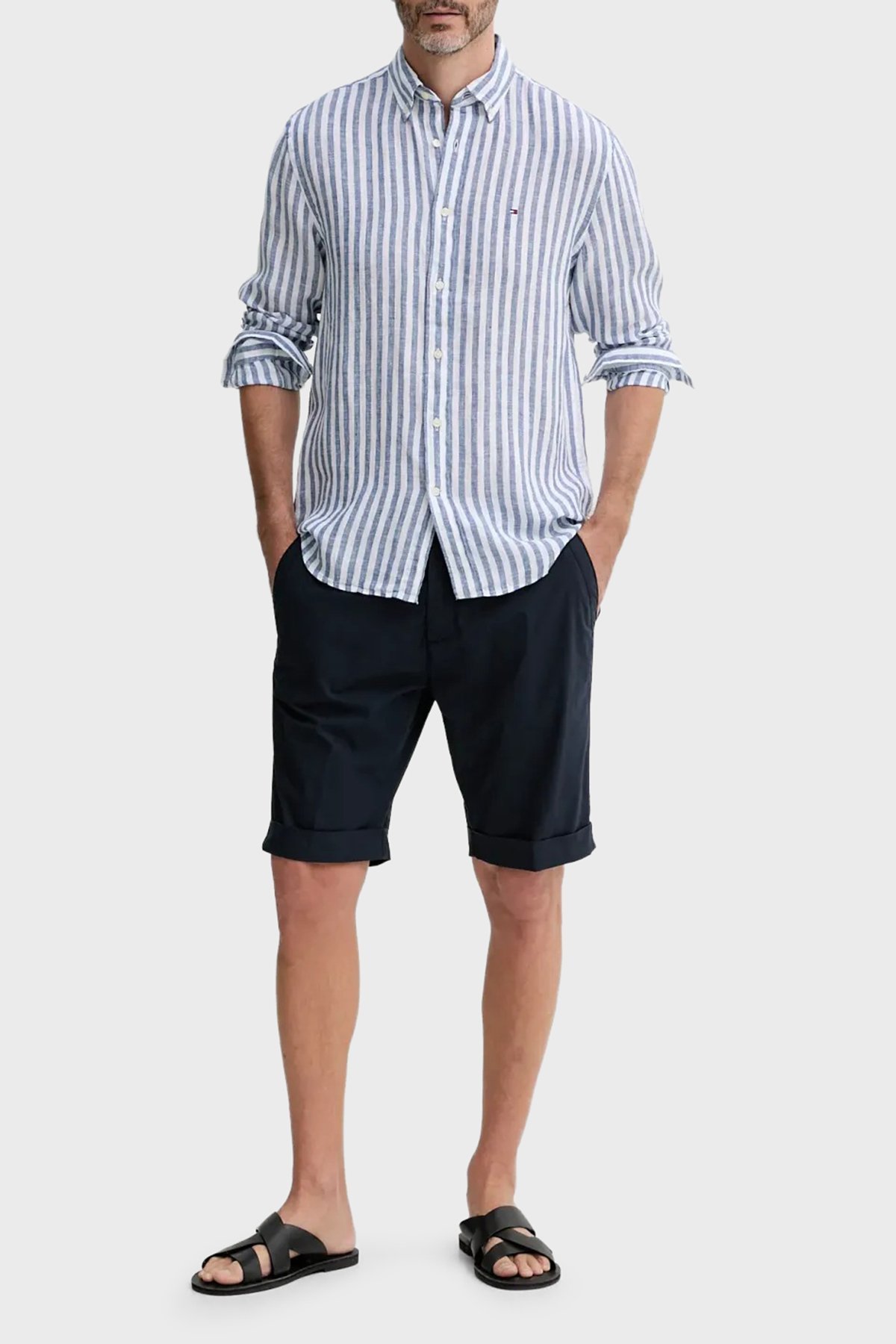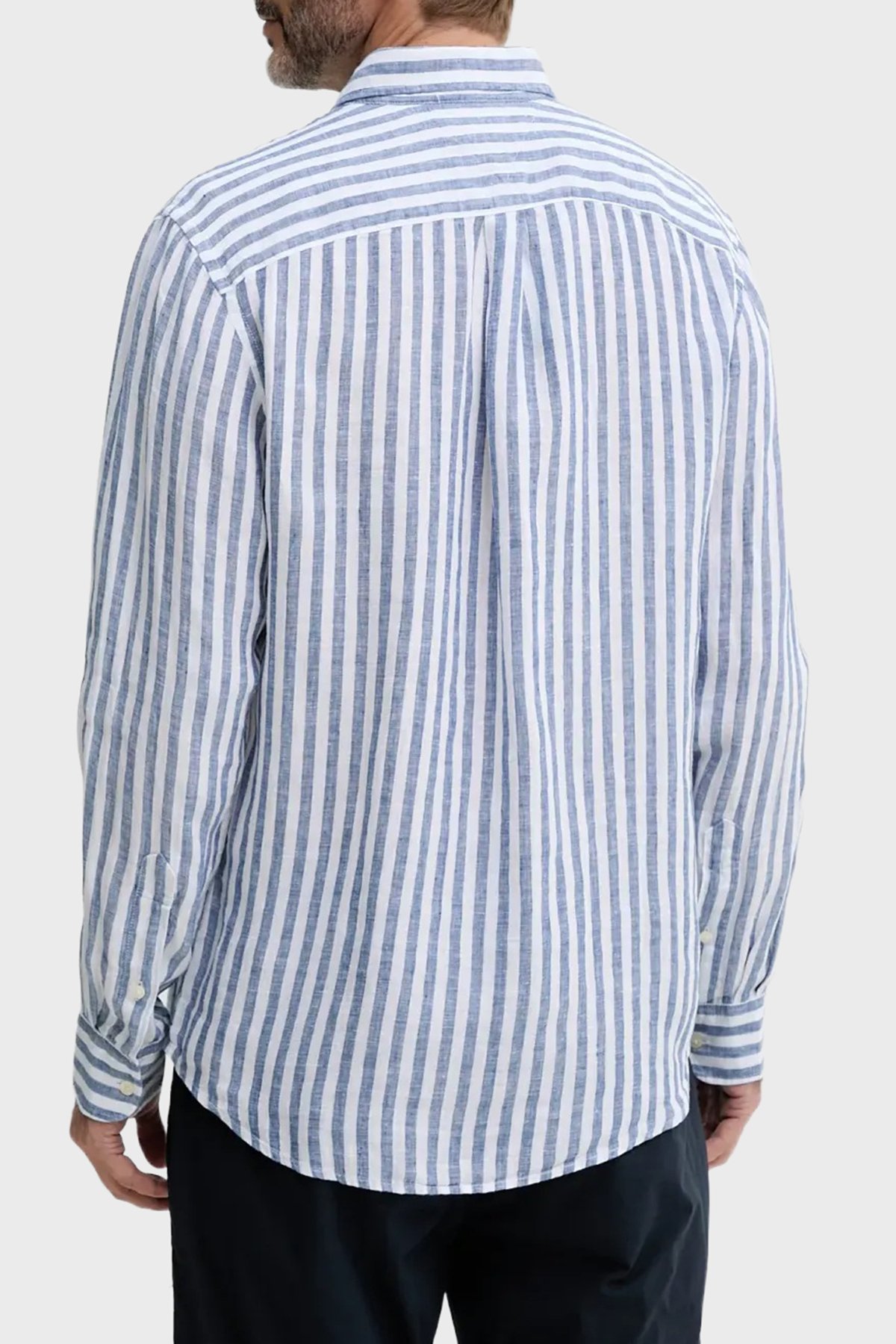 Çizgili % 100 Keten Uzun Kollu Düğmeli Yaka Erkek Gömlek MW0MW38581 0A5 MAVİ-BEYAZ