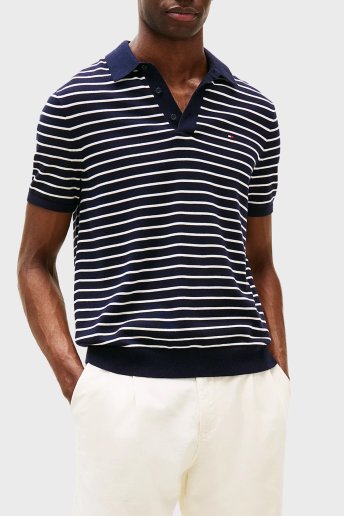 Çizgili % 100 Pamuk Regular Fit Düğmeli Erkek Polo Yaka T Shirt MW0MW37396 0A6 LACİVERT