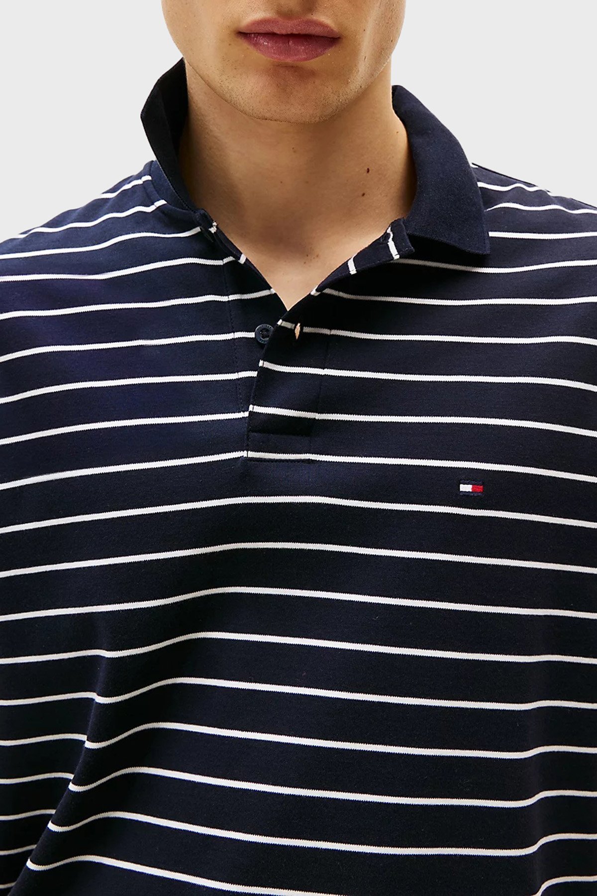 Çizgili % 100 Pamuk Regular Fit Düğmeli Erkek Polo Yaka T Shirt MW0MW39994 0A7 MAVİ