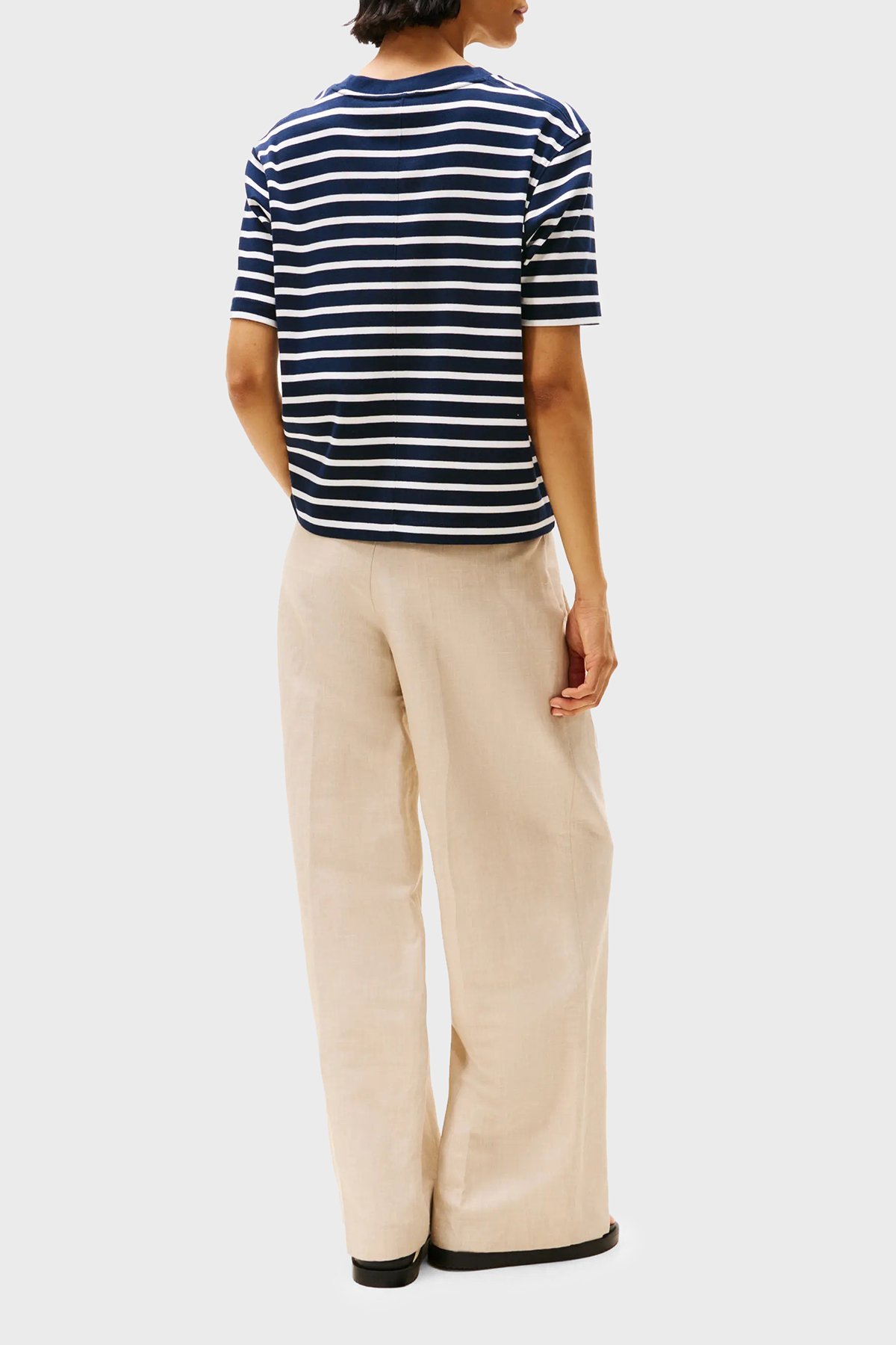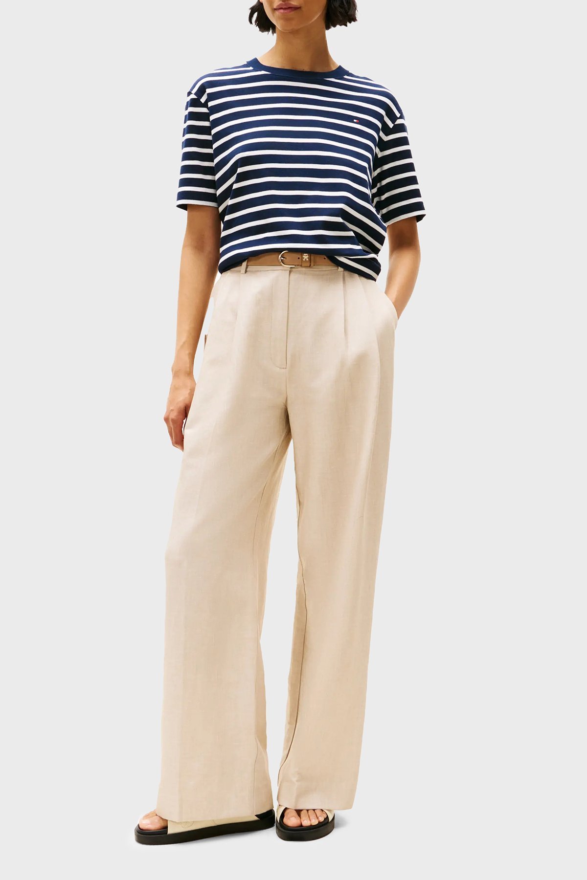 Çizgili % 100 Pamuk Relaxed Fit Yuvarlak Yaka Bayan T Shirt WW0WW46158 0X4 LACİVERT-BEYAZ