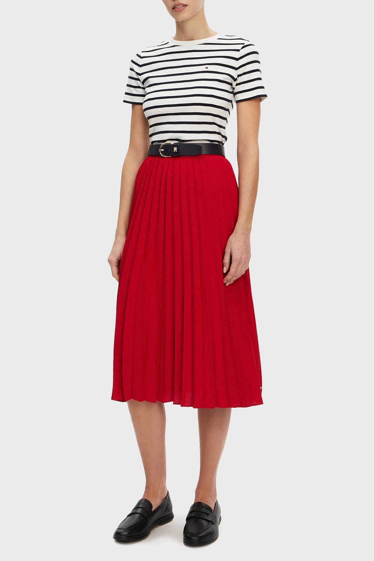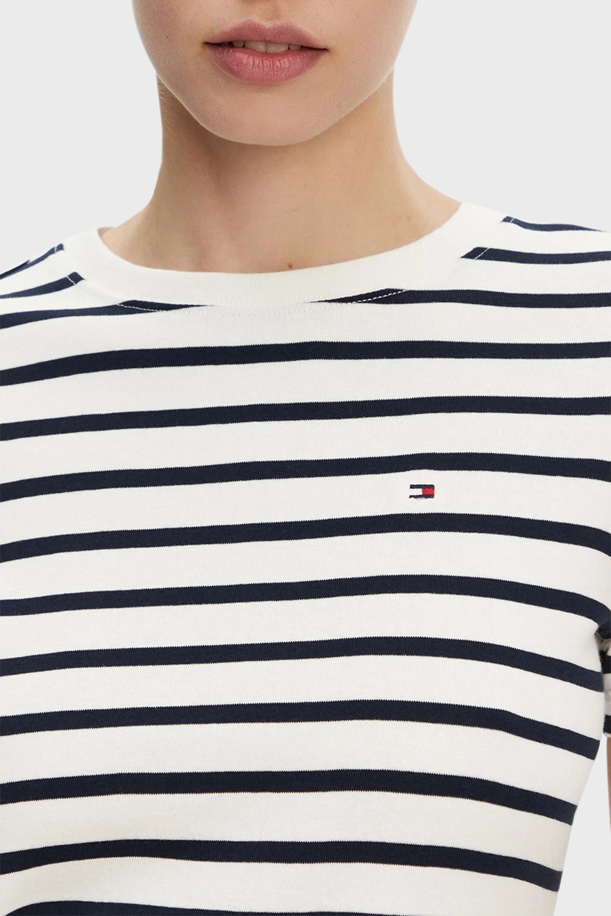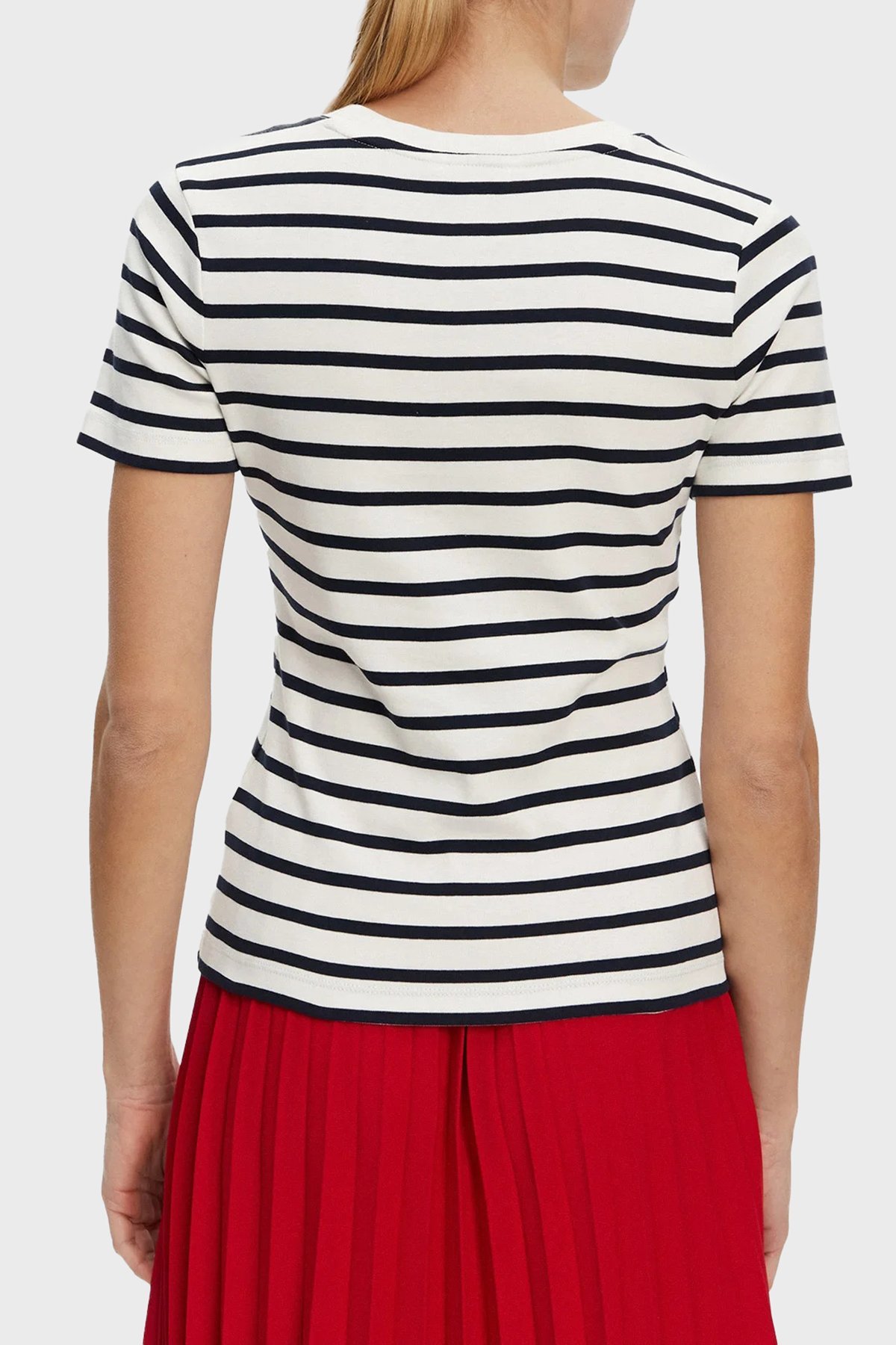 Çizgili % 100 Pamuk Slim Fit Bisiklet Yaka Bayan T Shirt WW0WW40587 0BF EKRU-LACİVERT