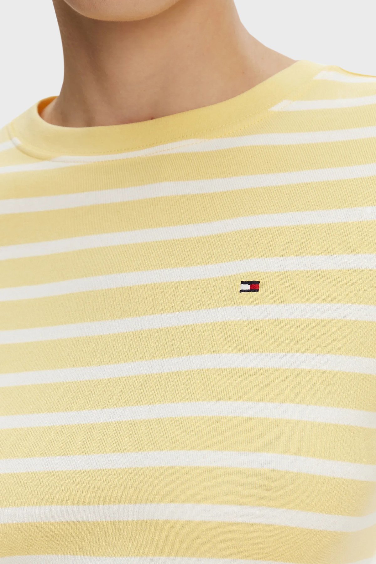 Çizgili % 100 Pamuk Slim Fit Bisiklet Yaka Bayan T Shirt WW0WW40587 0FR SARI