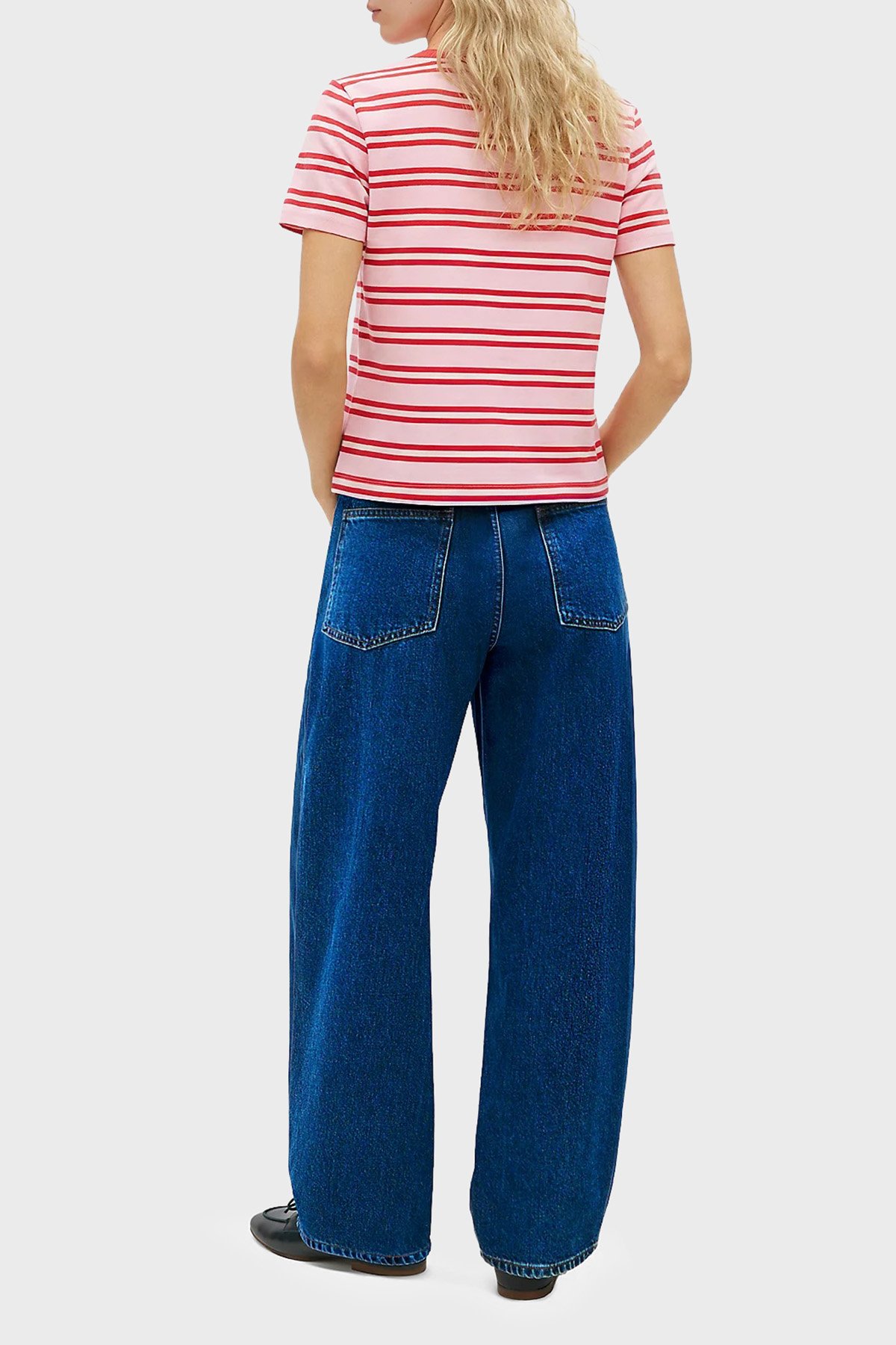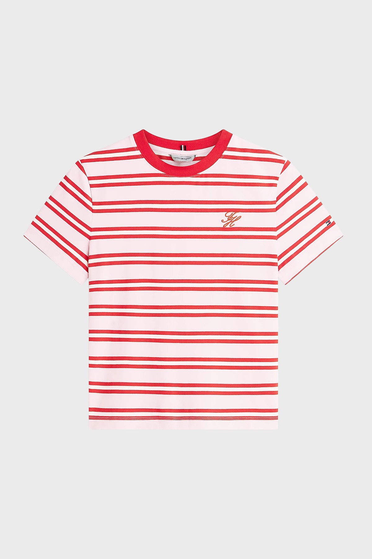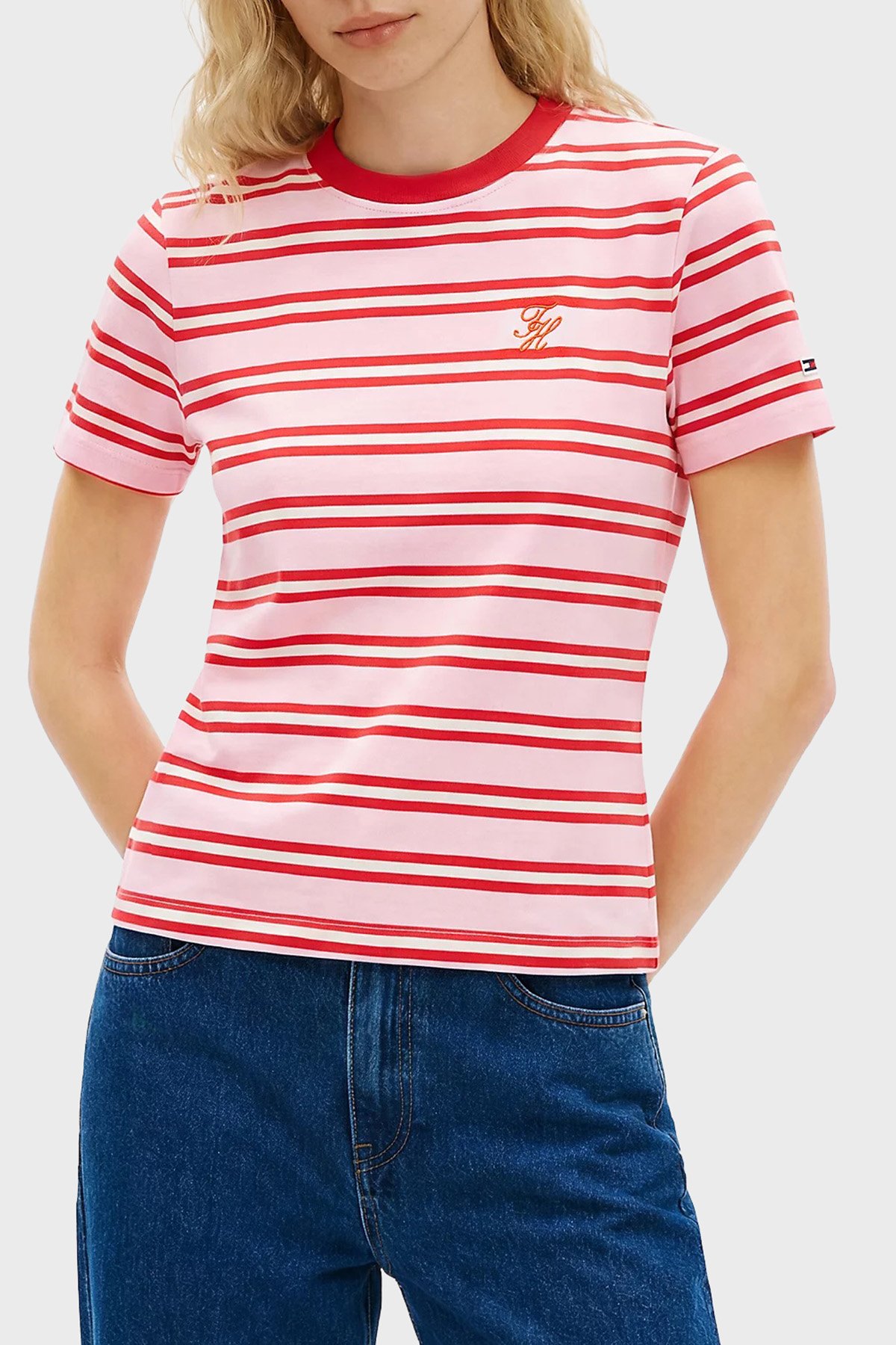 Çizgili Pamuklu Regular Fit Bisiklet Yaka Kadın T Shirt WW0WW48699 0D3 PEMBE