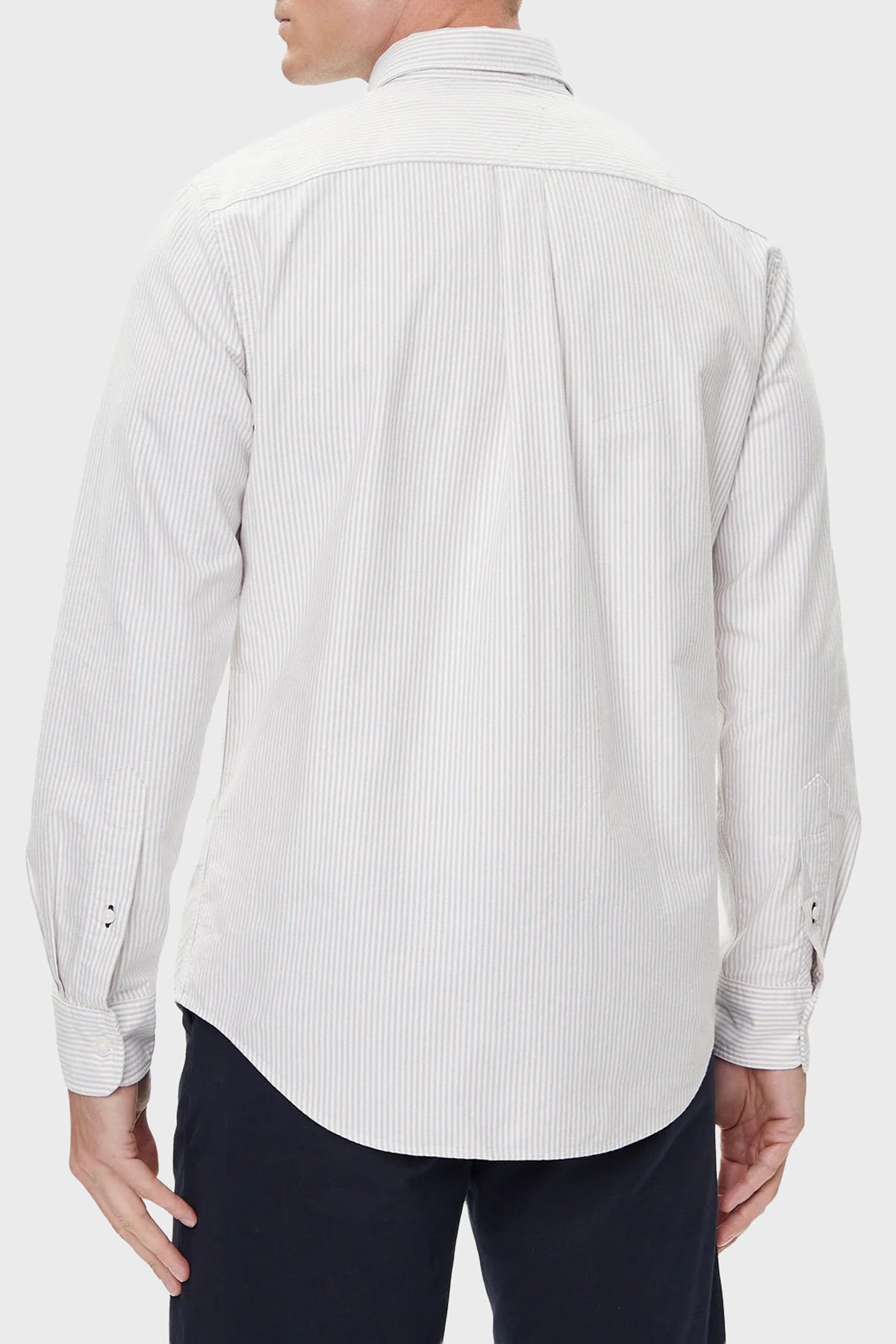 Çizgili Pamuklu Regular Fit Düğmeli Yaka Erkek Gömlek MW0MW36238 0BJ Bej-Açık Kahve