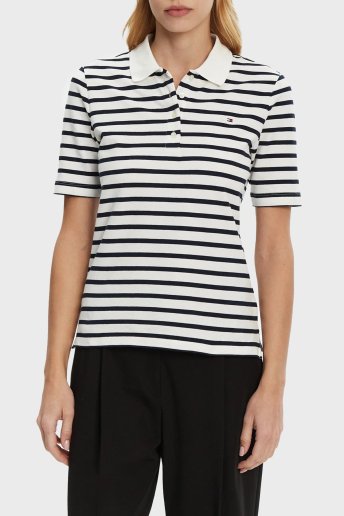 Çizgili Streç Pamuklu Regular Fit Düğmeli Bayan Polo Yaka T Shirt WW0WW43224 0BF EKRU-LACİVERT