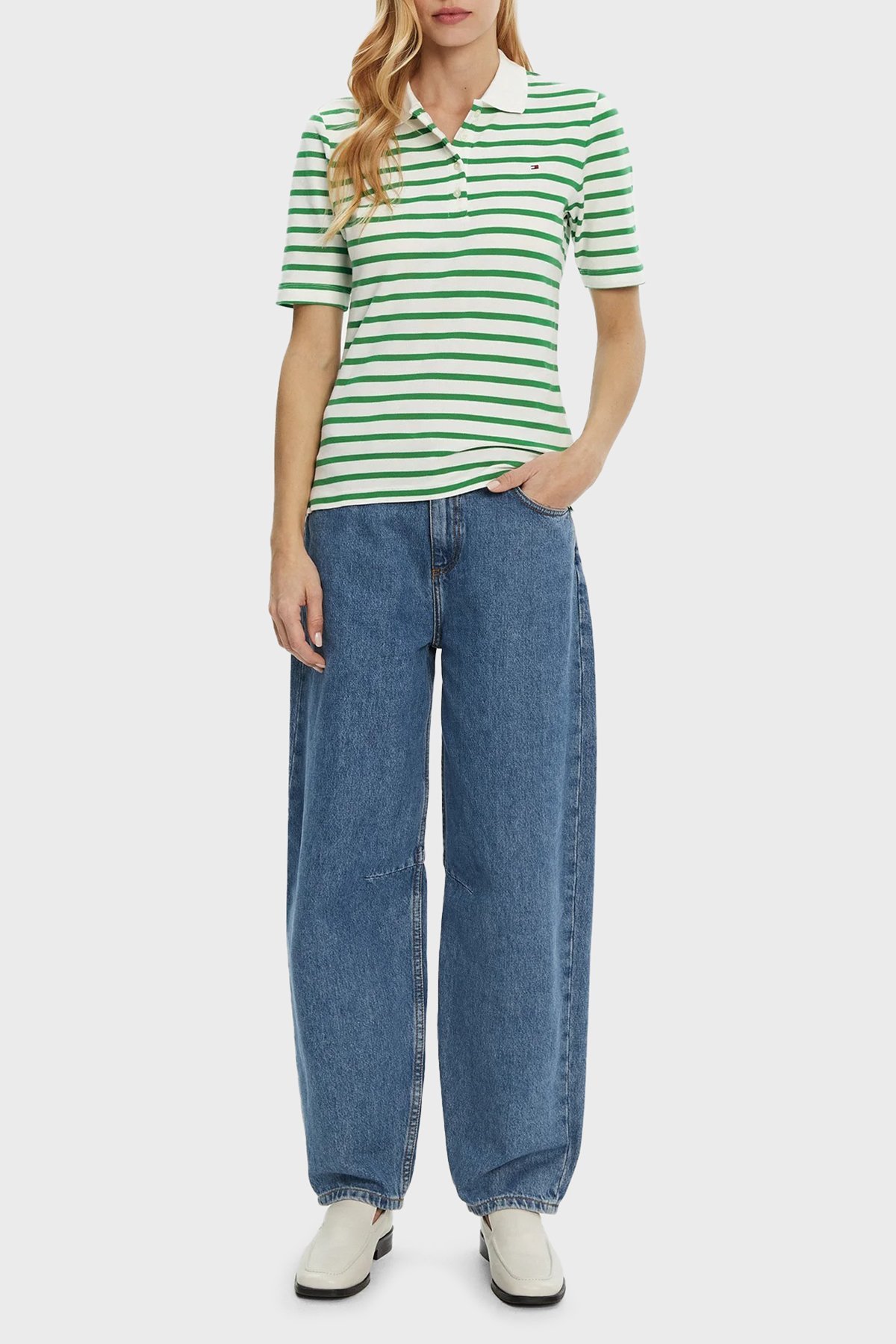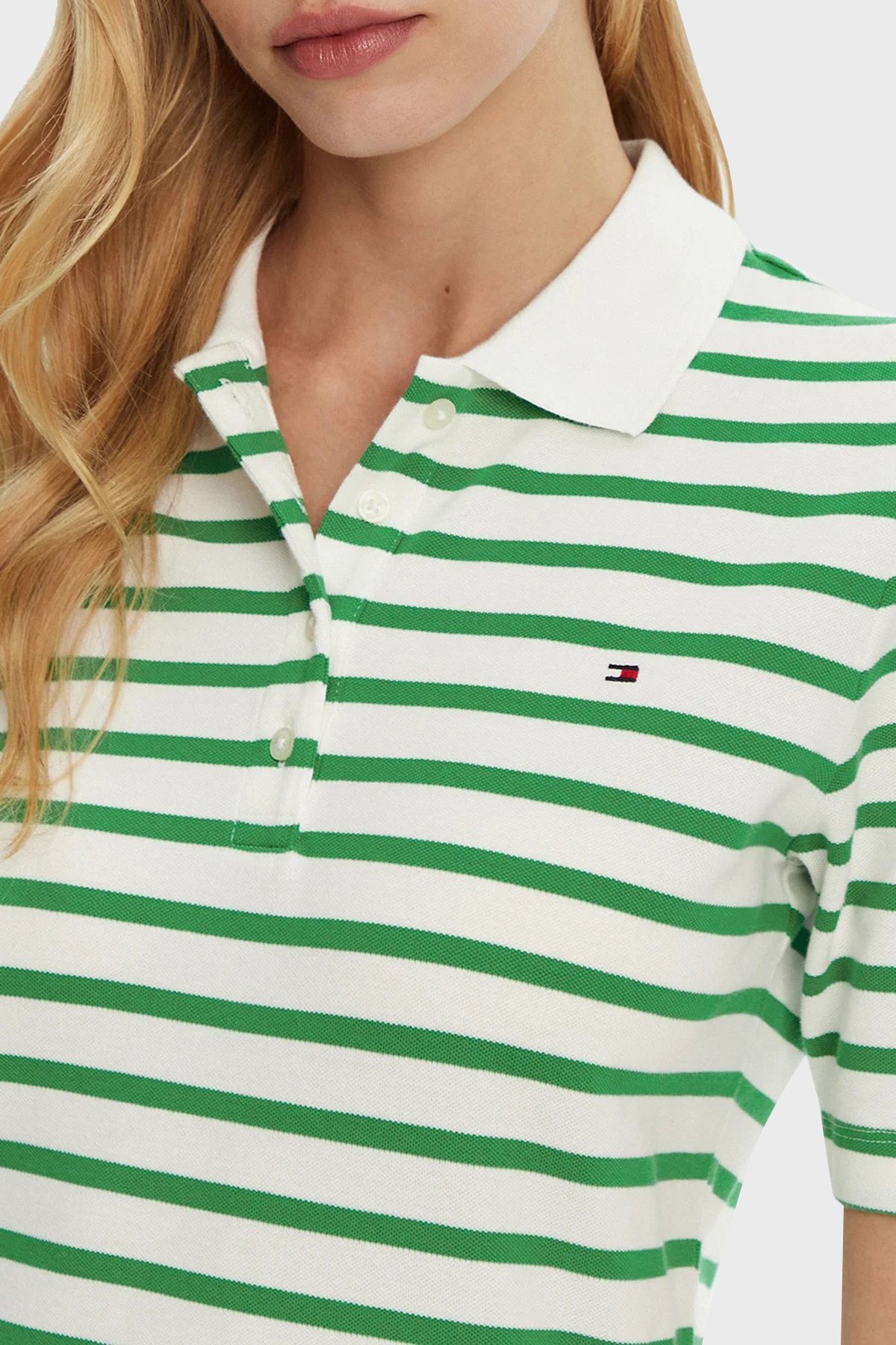 Çizgili Streç Pamuklu Regular Fit Düğmeli Bayan Polo Yaka T Shirt WW0WW43224 0FO BEYAZ-YEŞİL