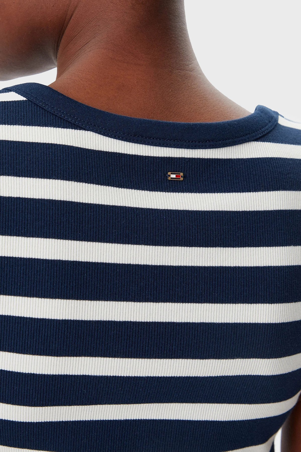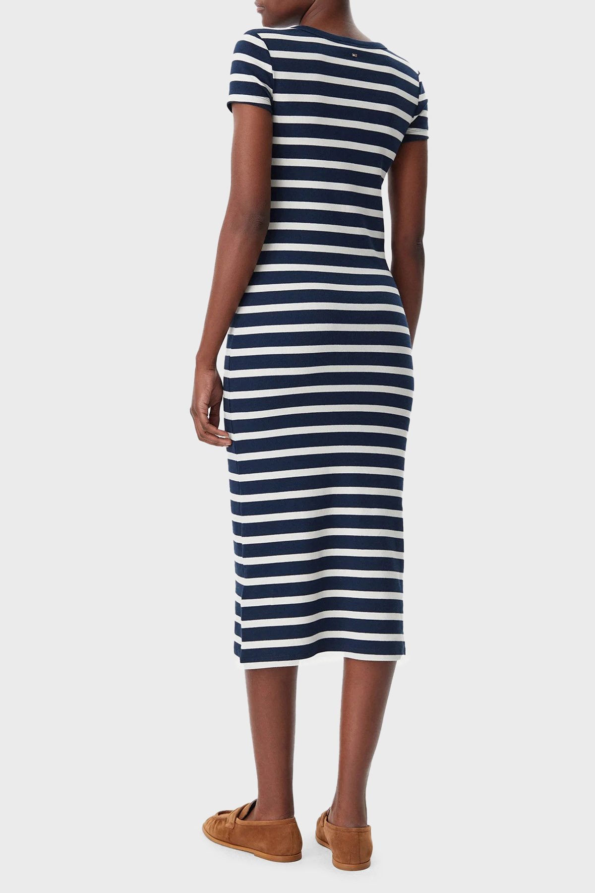 Çizgili Streç Pamuklu Slim Fit Midi Boy Bayan Elbise WW0WW43864 0A4 BEYAZ-MAVİ