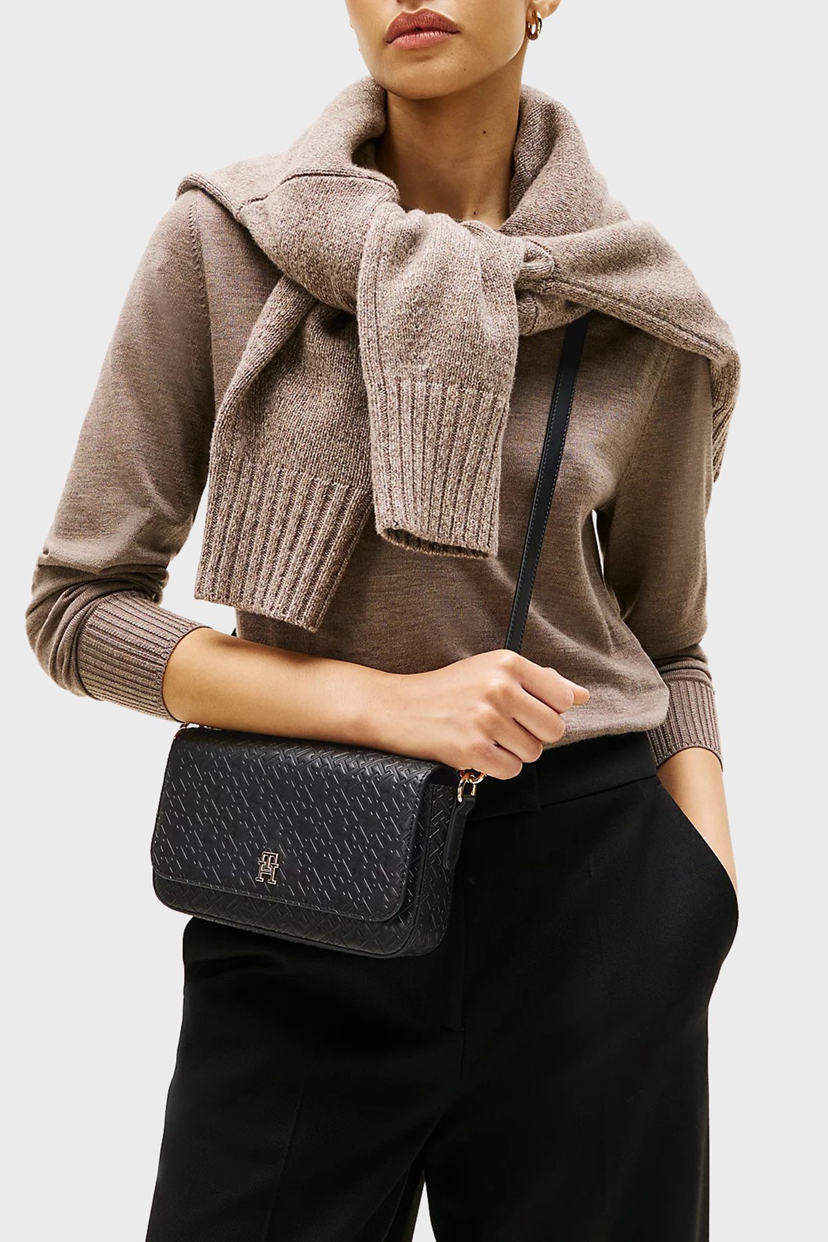 Dokulu Logolu Çıkarılabilir Askılı Bayan Çanta AW0AW18002 BDS SİYAH
