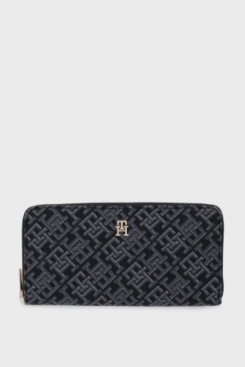 Dokulu Logolu Fermuarlı Bayan Cüzdan AW0AW17956 BDS SİYAH
