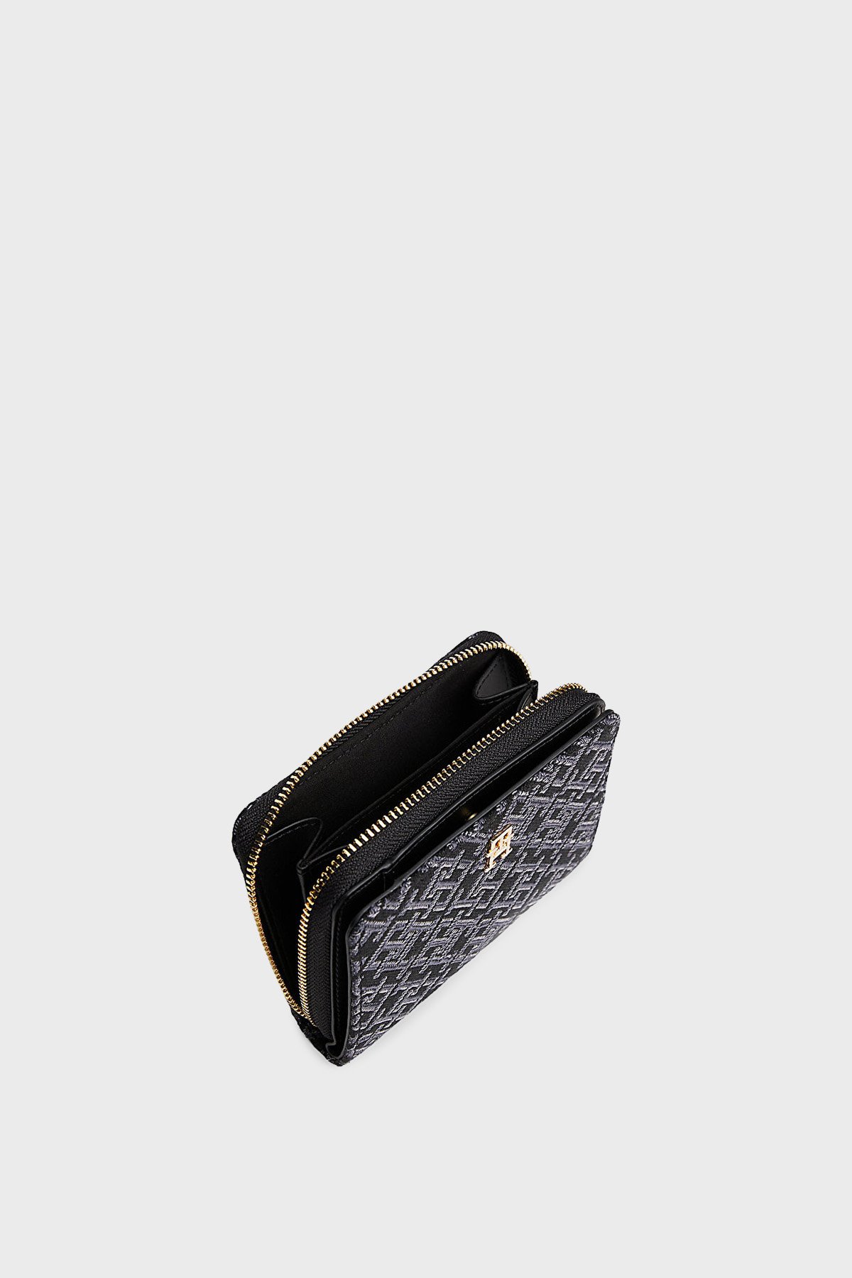 Dokulu Logolu Fermuarlı Bayan Cüzdan AW0AW17957 BDS SİYAH