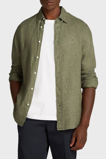 Düğmeli Yaka % 100 Keten Regular Fit Erkek Gömlek MW0MW34602 PLI YEŞİL