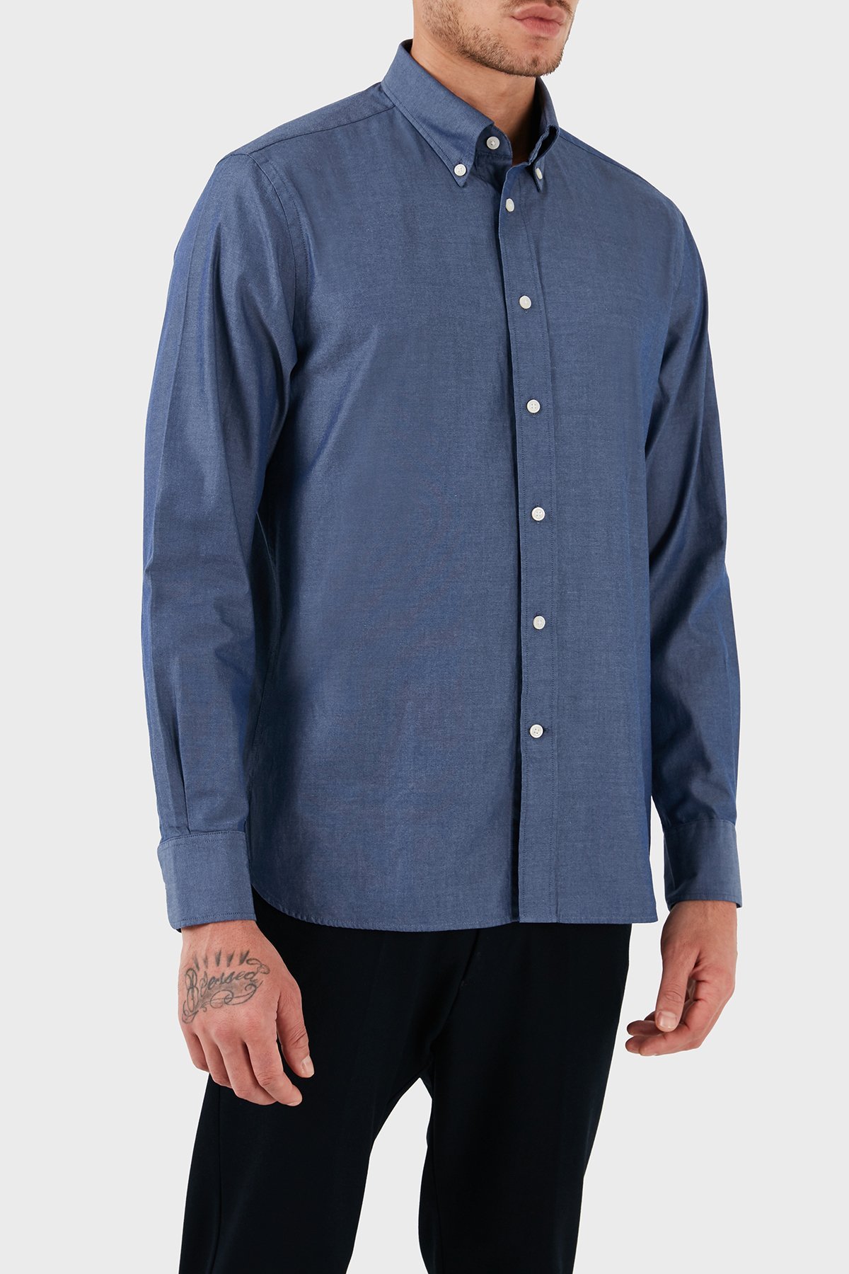 Düğmeli Yaka % 100 Pamuk Regular Fit Erkek Gömlek MW0MW33326 DXF LACİVERT