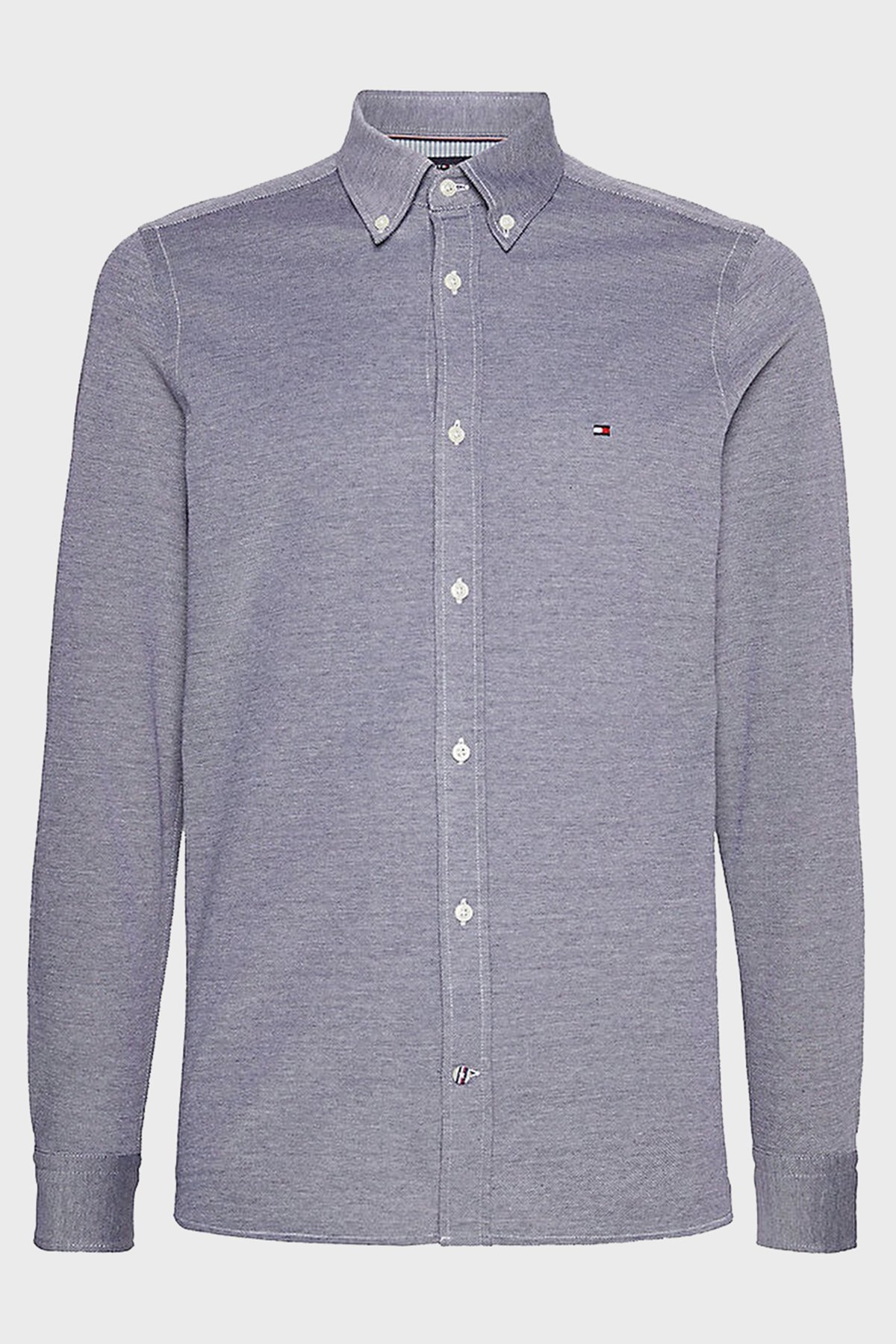 Düğmeli Yaka Organik Pamuklu Uzun Kollu Slim Fit Erkek Gömlek MW0MW30675 DCC LACİVERT