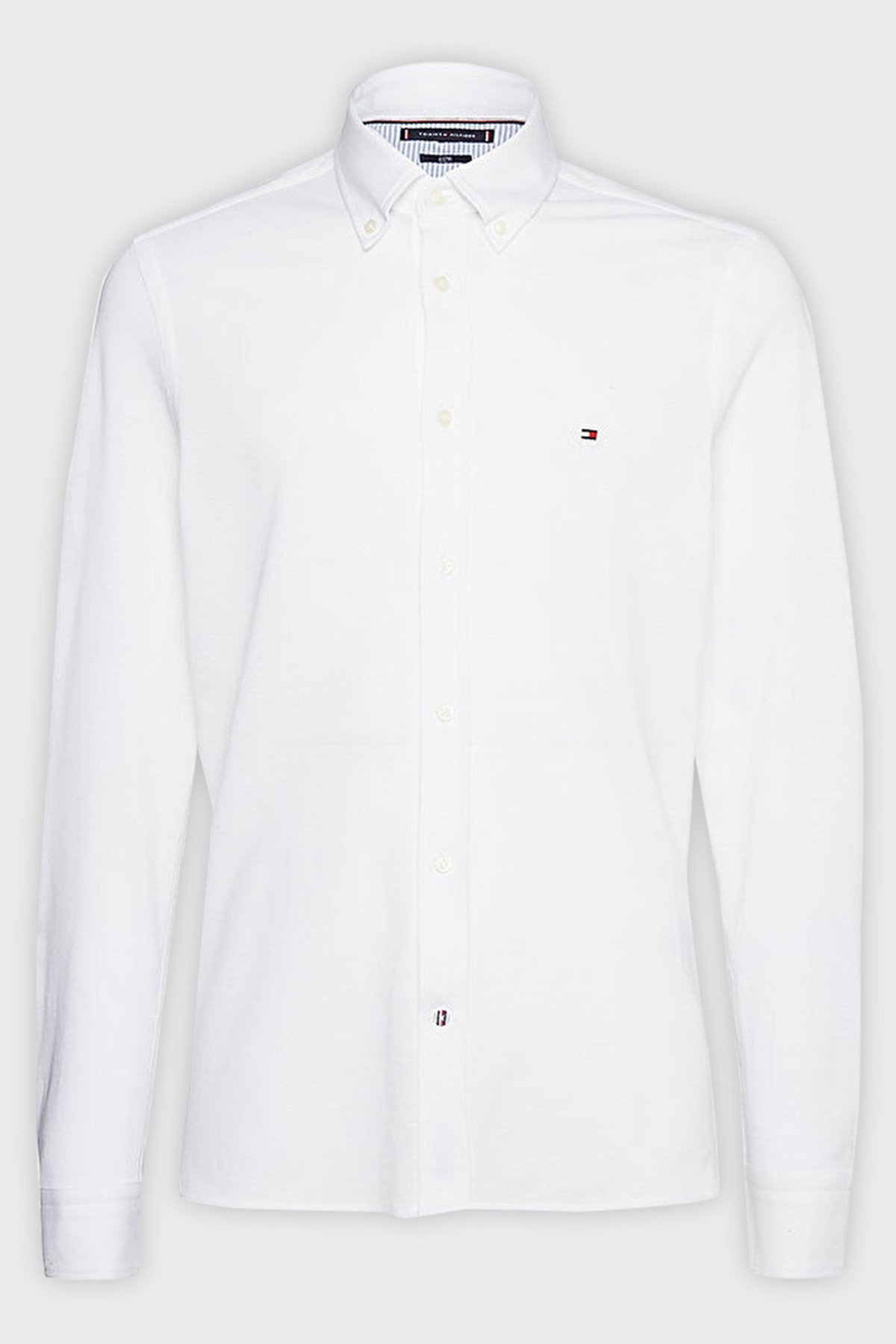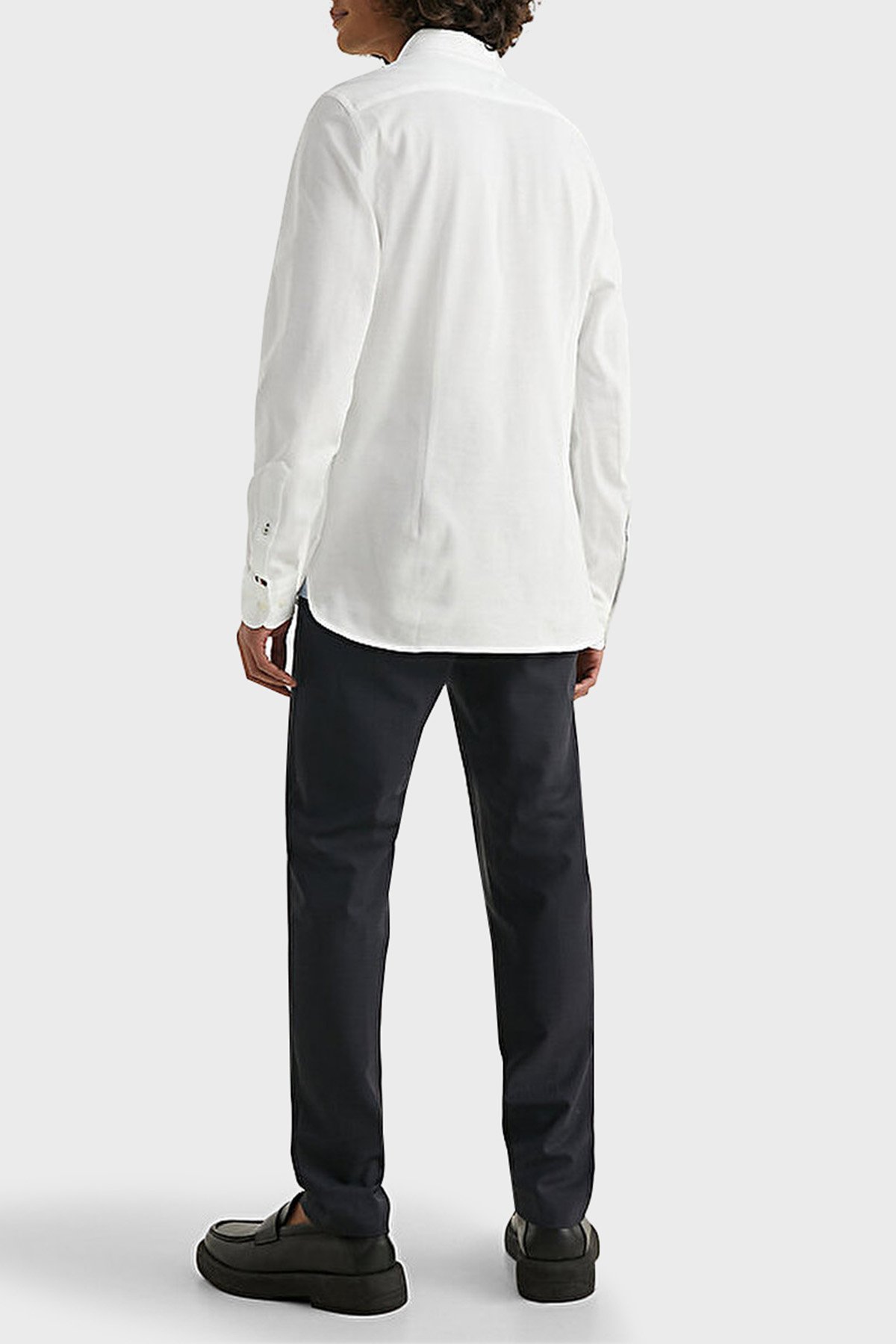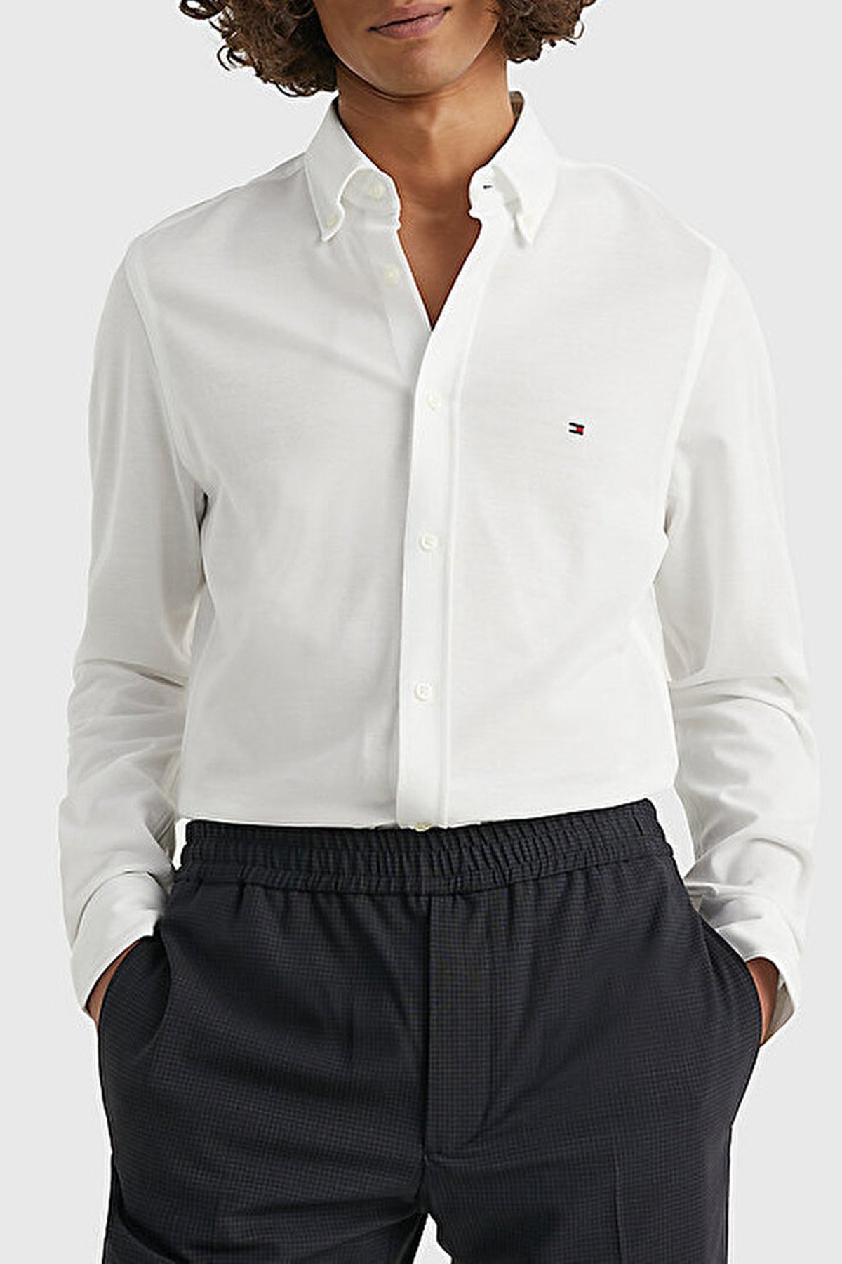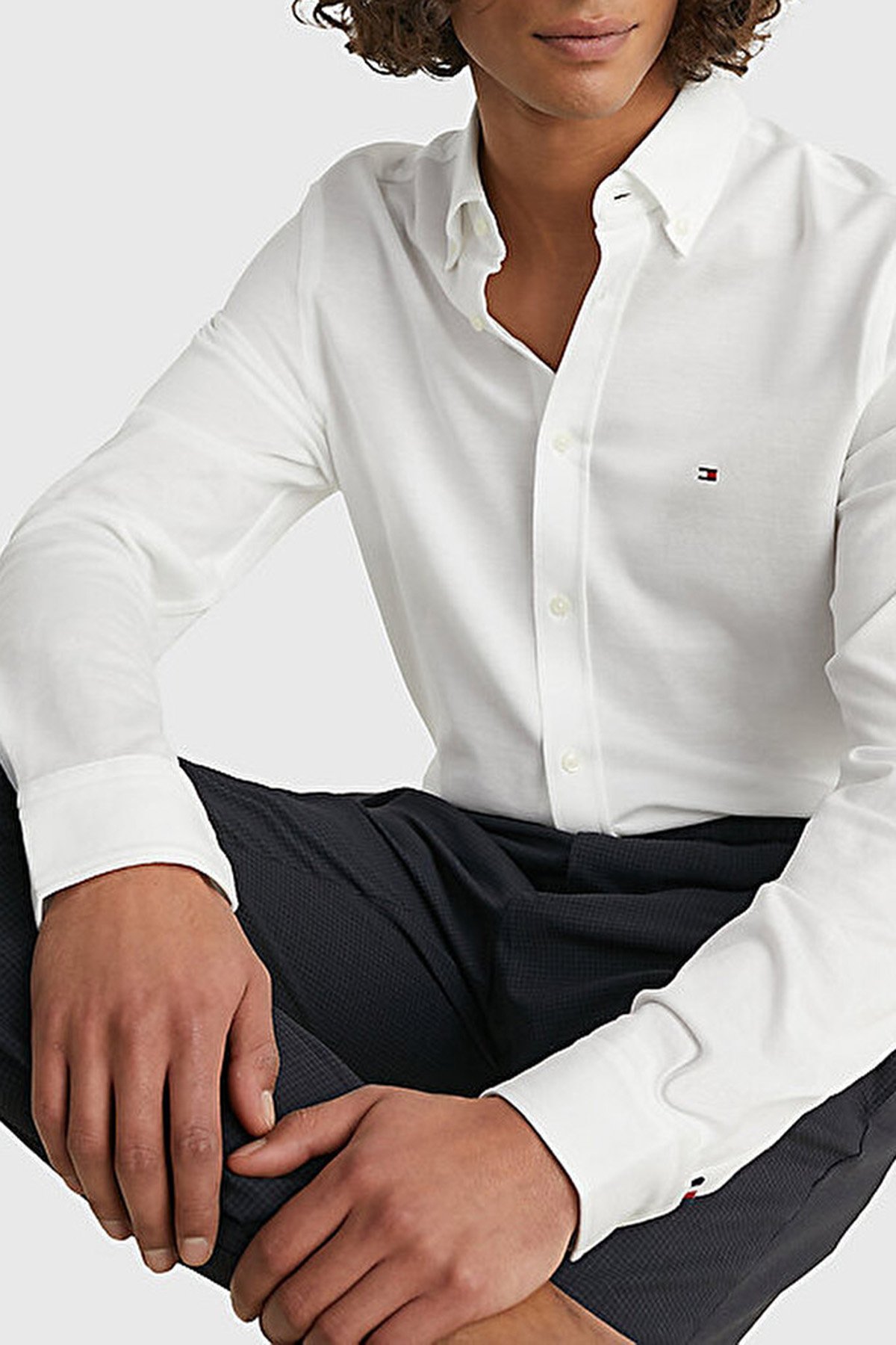Düğmeli Yaka Organik Pamuklu Uzun Kollu Slim Fit Erkek Gömlek MW0MW30675 YCF BEYAZ