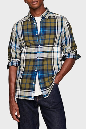 Ekoseli Pamuklu Regular Fit Erkek Gömlek MW0MW32893 0N1 YEŞİL-BEYAZ