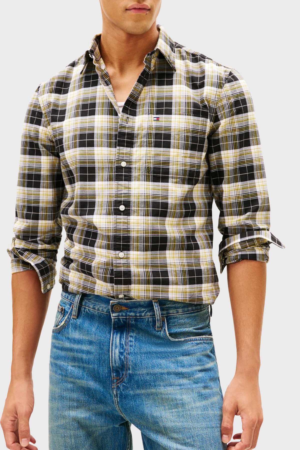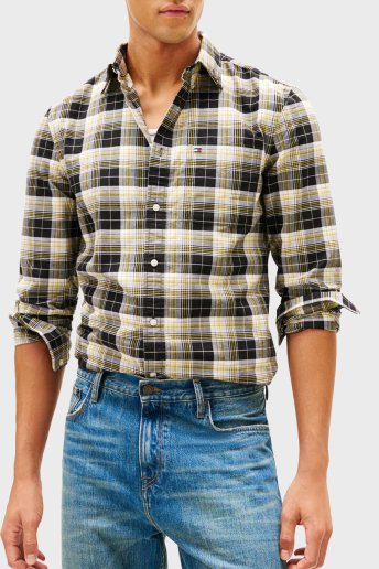 Ekoseli Pamuklu Regular Fit Uzun Kollu Erkek Gömlek MW0MW41678 0MD SİYAH